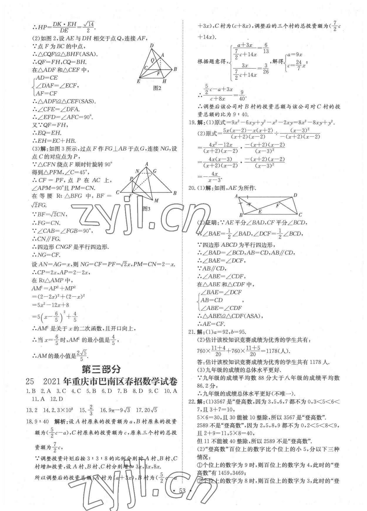 注:目前有些书本章节名称可能整理的还不是很完善,但都是按照顺序排列的,请同学们按照顺序仔细查找。练习册 2022年锋芒文化重庆市名校中考金卷数学 答案主要是用来给同学们做完题方便对答案用的,请勿直接抄袭。