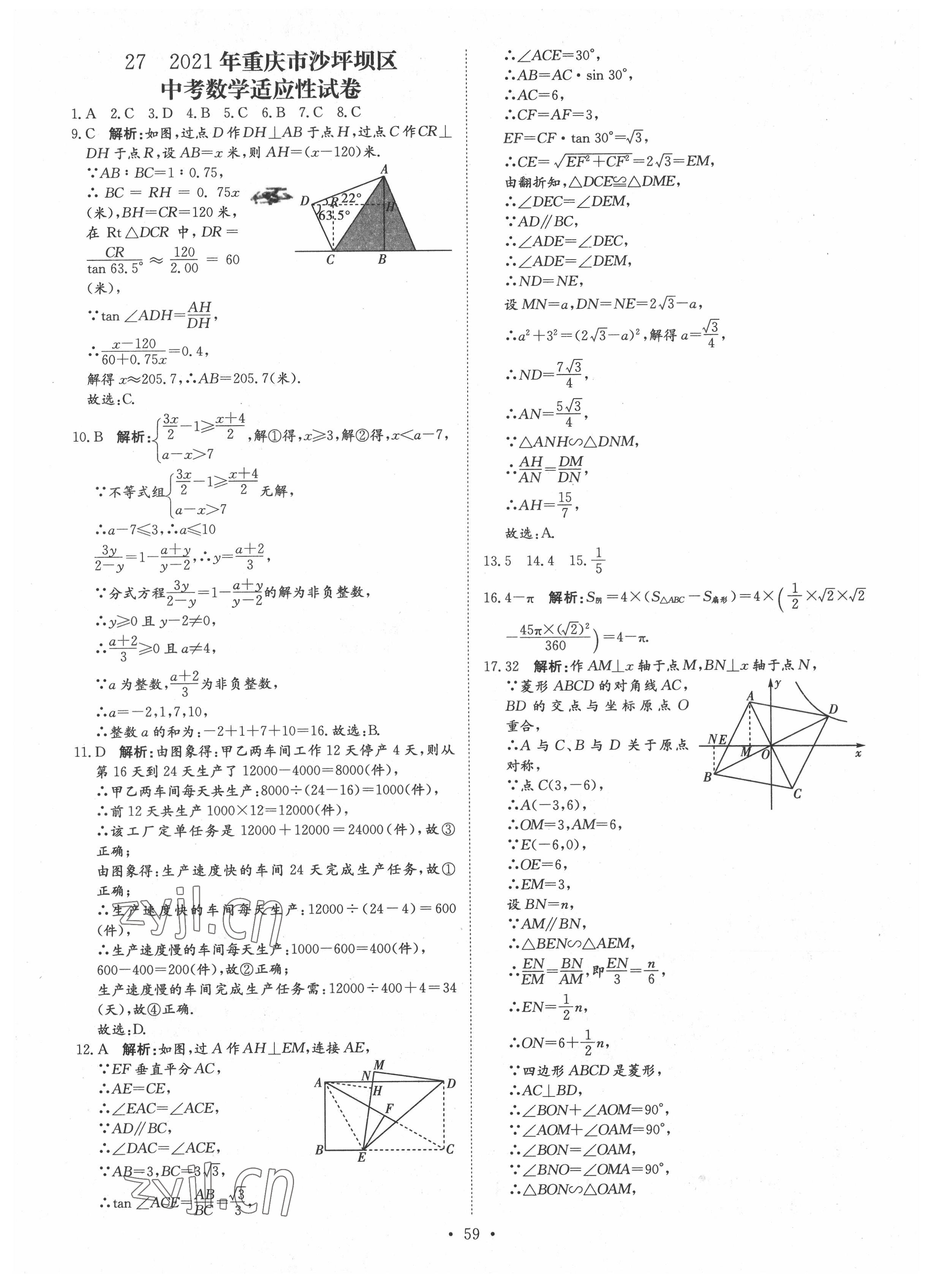 注:目前有些书本章节名称可能整理的还不是很完善,但都是按照顺序排列的,请同学们按照顺序仔细查找。练习册 2022年锋芒文化重庆市名校中考金卷数学 答案主要是用来给同学们做完题方便对答案用的,请勿直接抄袭。