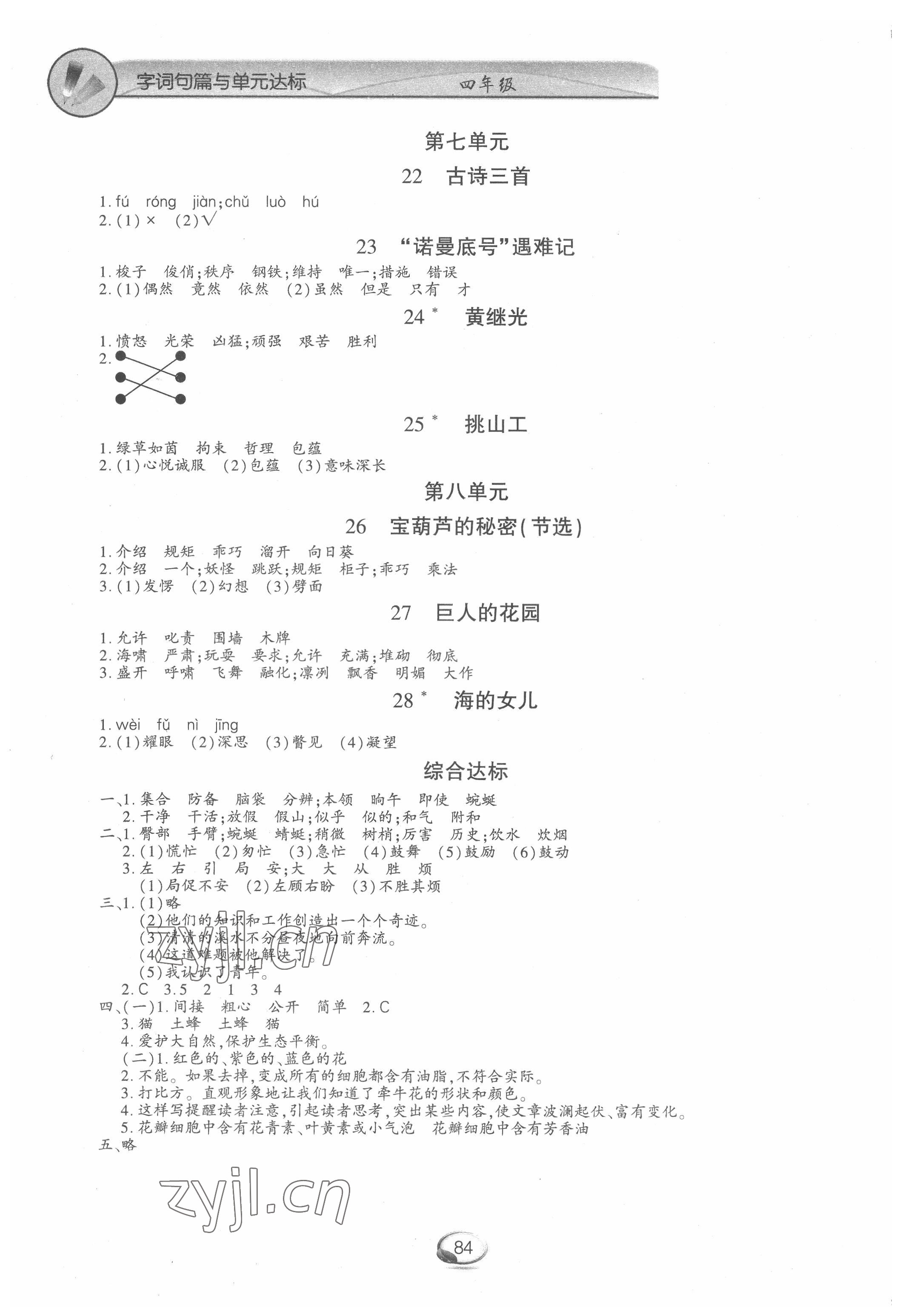 2022年字词句篇与单元达标四年级下册人教版上海交通大学出版社