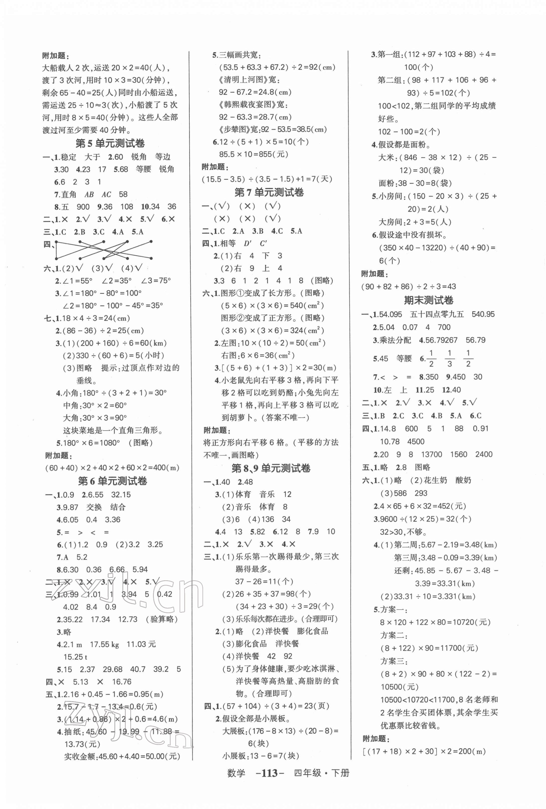 《2022年状元成才路创优作业100分四年级数学下册人教版湖南专版》