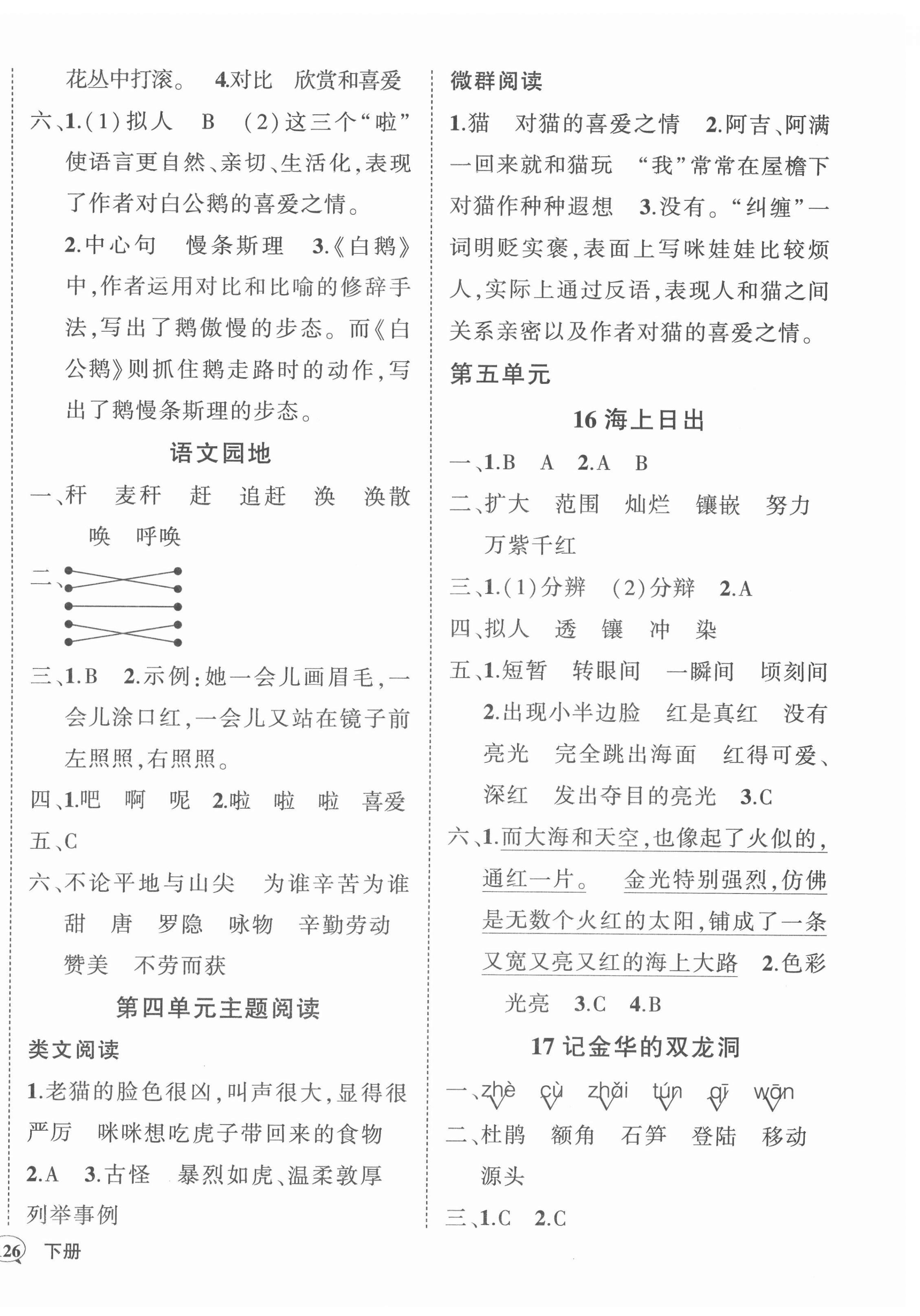 2022年状元成才路创优作业100分四年级语文下册人教版湖南专版