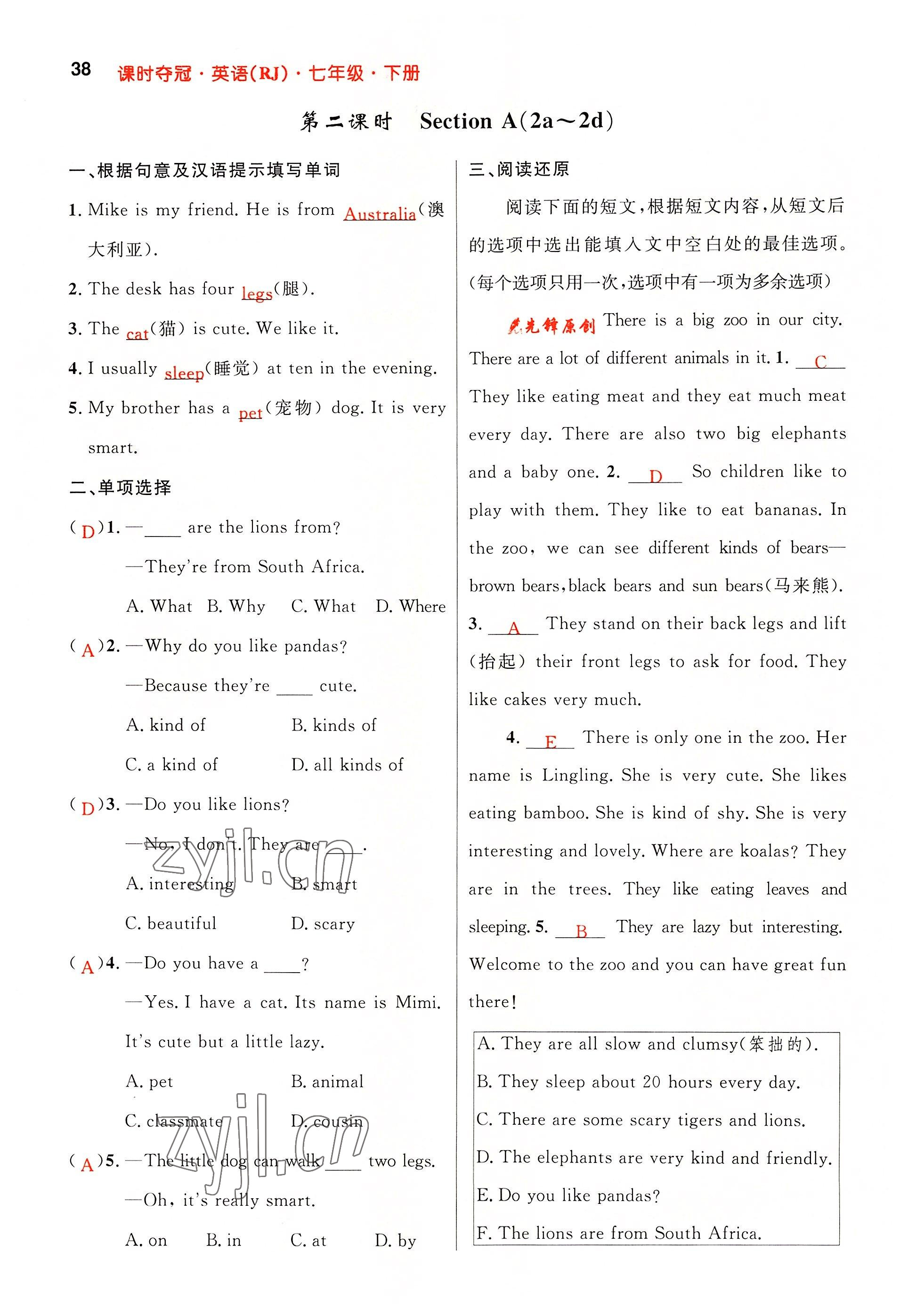 注:目前有些书本章节名称可能整理的还不是很完善,但都是按照顺序排列的,请同学们按照顺序仔细查找。练习册 2022年课时夺冠七年级英语下册人教版黄冈孝感咸宁专版 答案主要是用来给同学们做完题方便对答案用的,请勿直接抄袭。