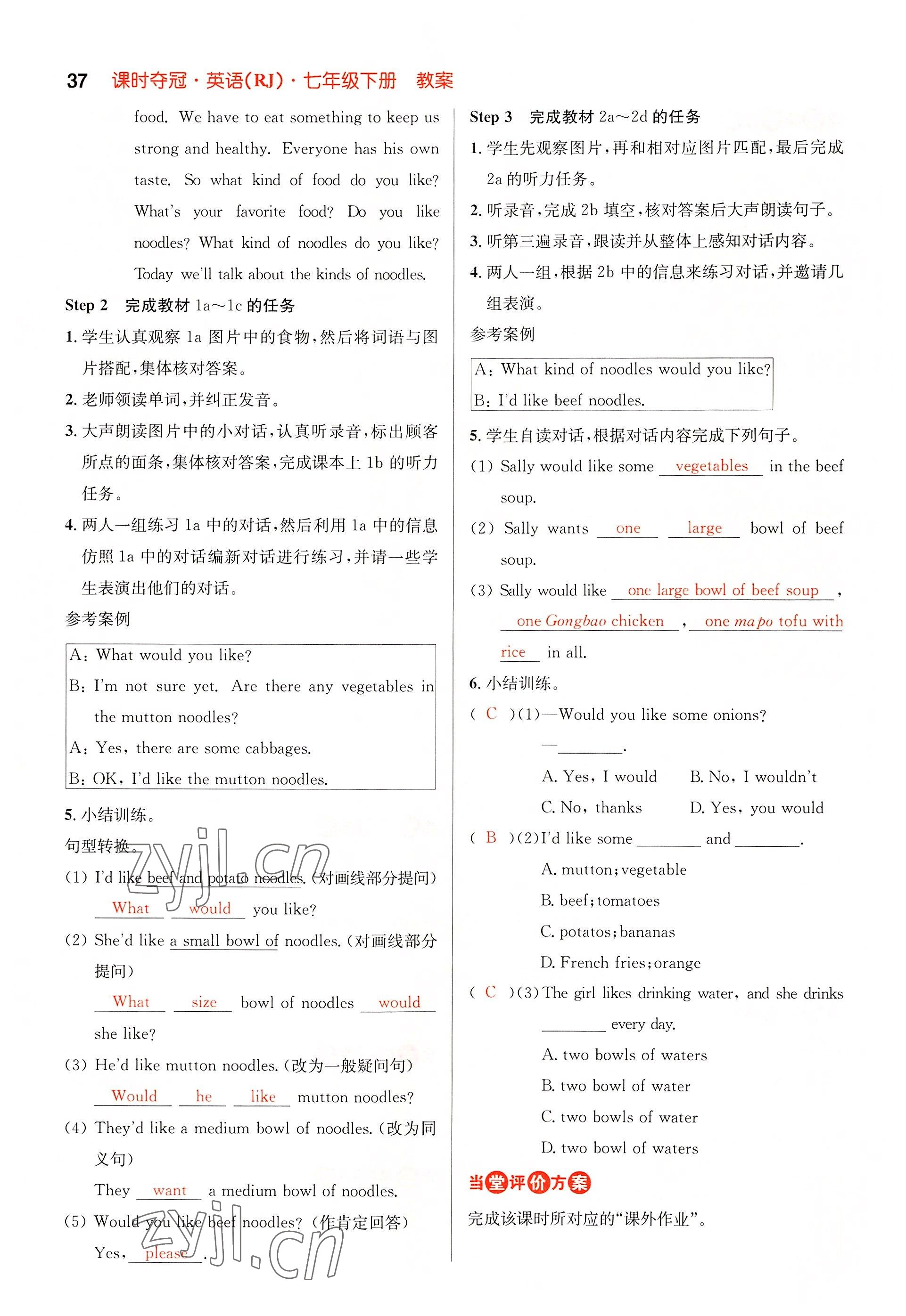 注:目前有些书本章节名称可能整理的还不是很完善,但都是按照顺序排列的,请同学们按照顺序仔细查找。练习册 2022年课时夺冠七年级英语下册人教版黄冈孝感咸宁专版 答案主要是用来给同学们做完题方便对答案用的,请勿直接抄袭。