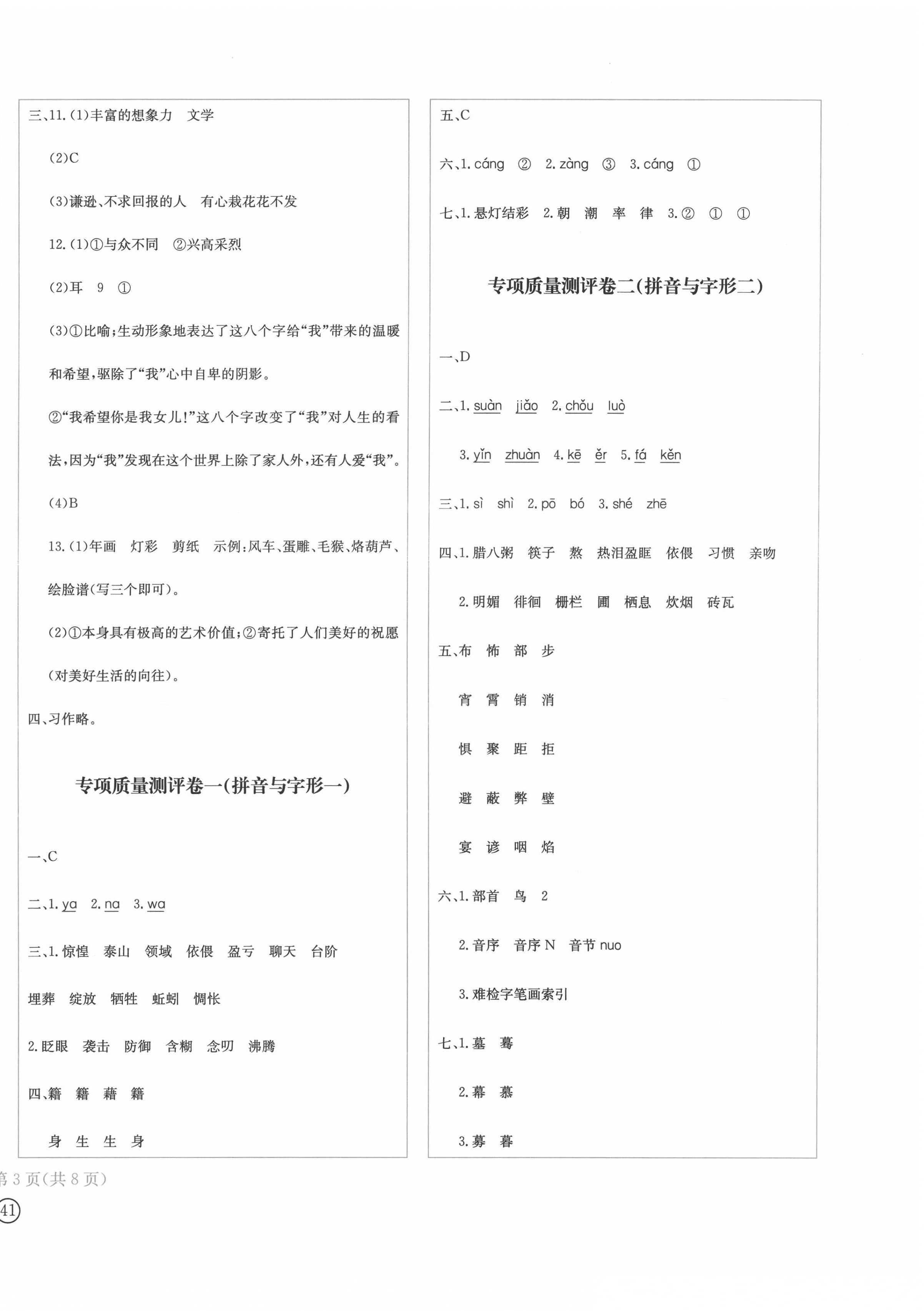 注:目前有些书本章节名称可能整理的还不是很完善,但都是按照顺序排列的,请同学们按照顺序仔细查找。练习册 2022年学科素养质量测评卷六年级语文下册人教版 答案主要是用来给同学们做完题方便对答案用的,请勿直接抄袭。