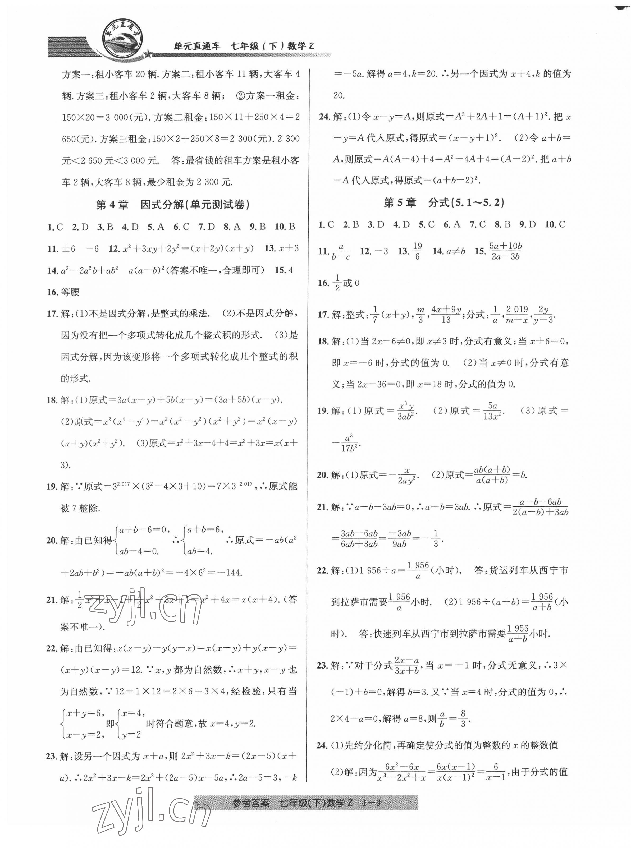 注:目前有些书本章节名称可能整理的还不是很完善,但都是按照顺序排列的,请同学们按照顺序仔细查找。练习册 2022年开源图书单元直通车七年级数学下册浙教版 答案主要是用来给同学们做完题方便对答案用的,请勿直接抄袭。