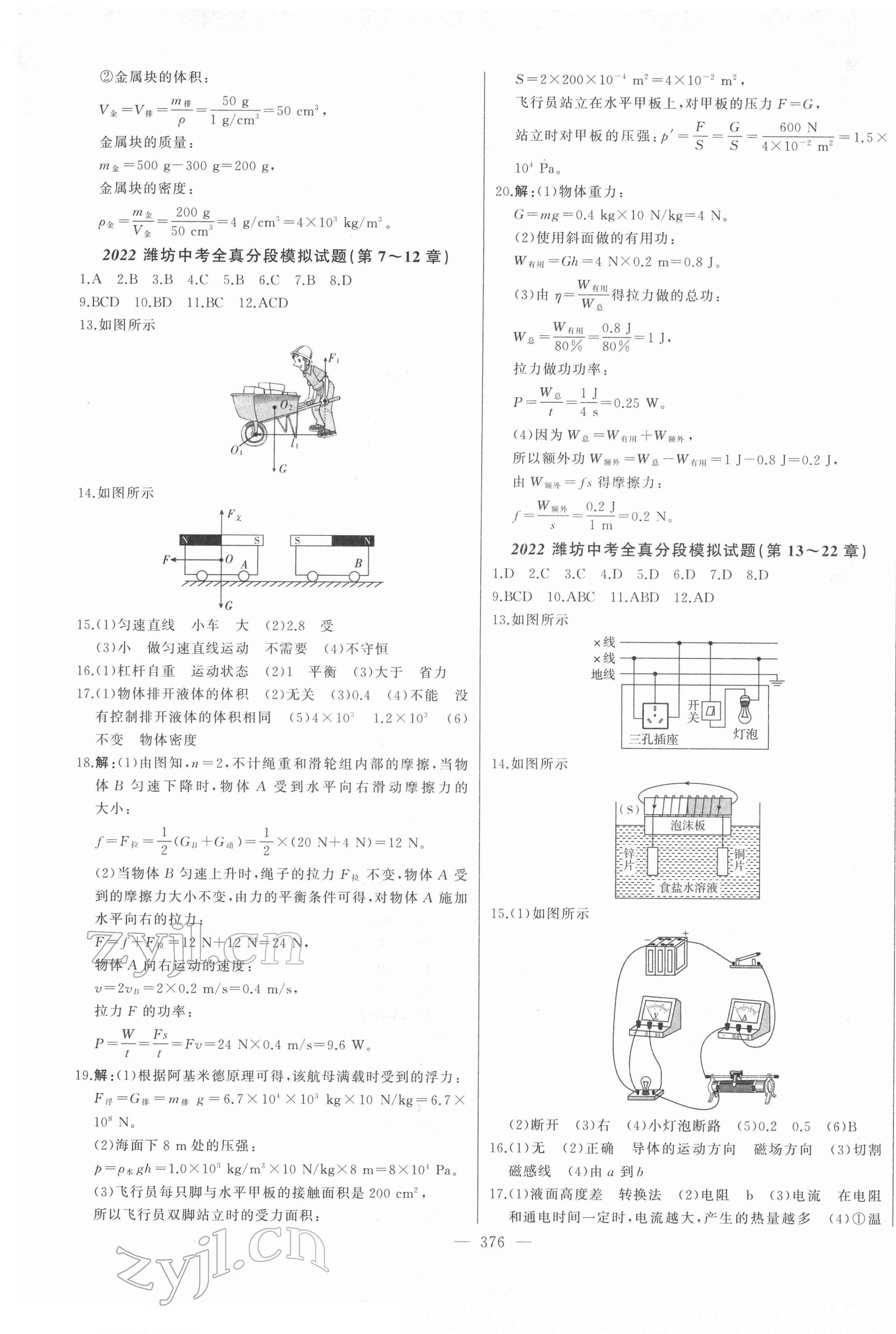 注:目前有些书本章节名称可能整理的还不是很完善,但都是按照顺序排列的,请同学们按照顺序仔细查找。练习册 2022年学业总复习全程精练物理中考人教版 答案主要是用来给同学们做完题方便对答案用的,请勿直接抄袭。
