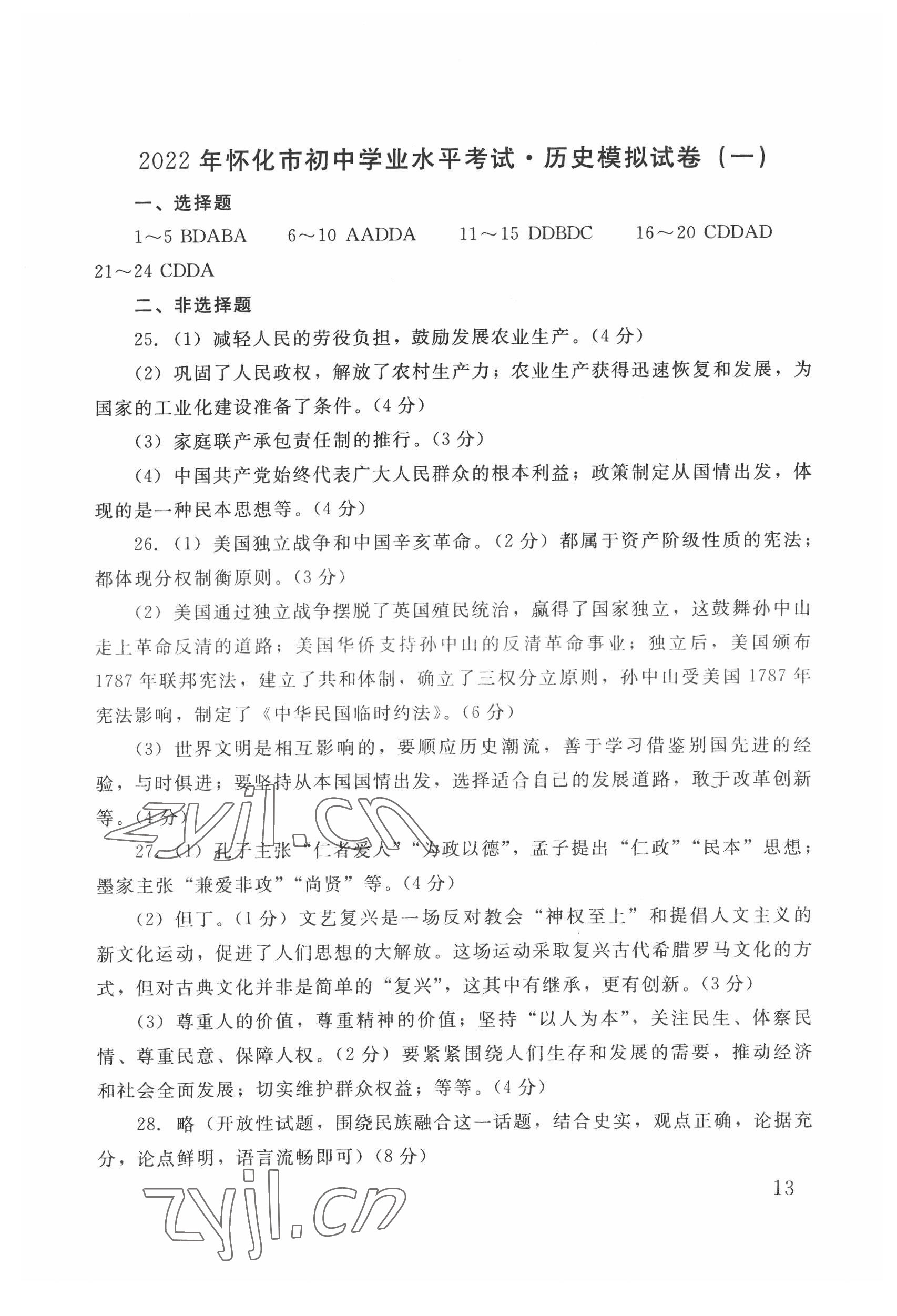 注:目前有些书本章节名称可能整理的还不是很完善,但都是按照顺序排列的,请同学们按照顺序仔细查找。练习册 2022年剑指中考历史怀化专版 答案主要是用来给同学们做完题方便对答案用的,请勿直接抄袭。