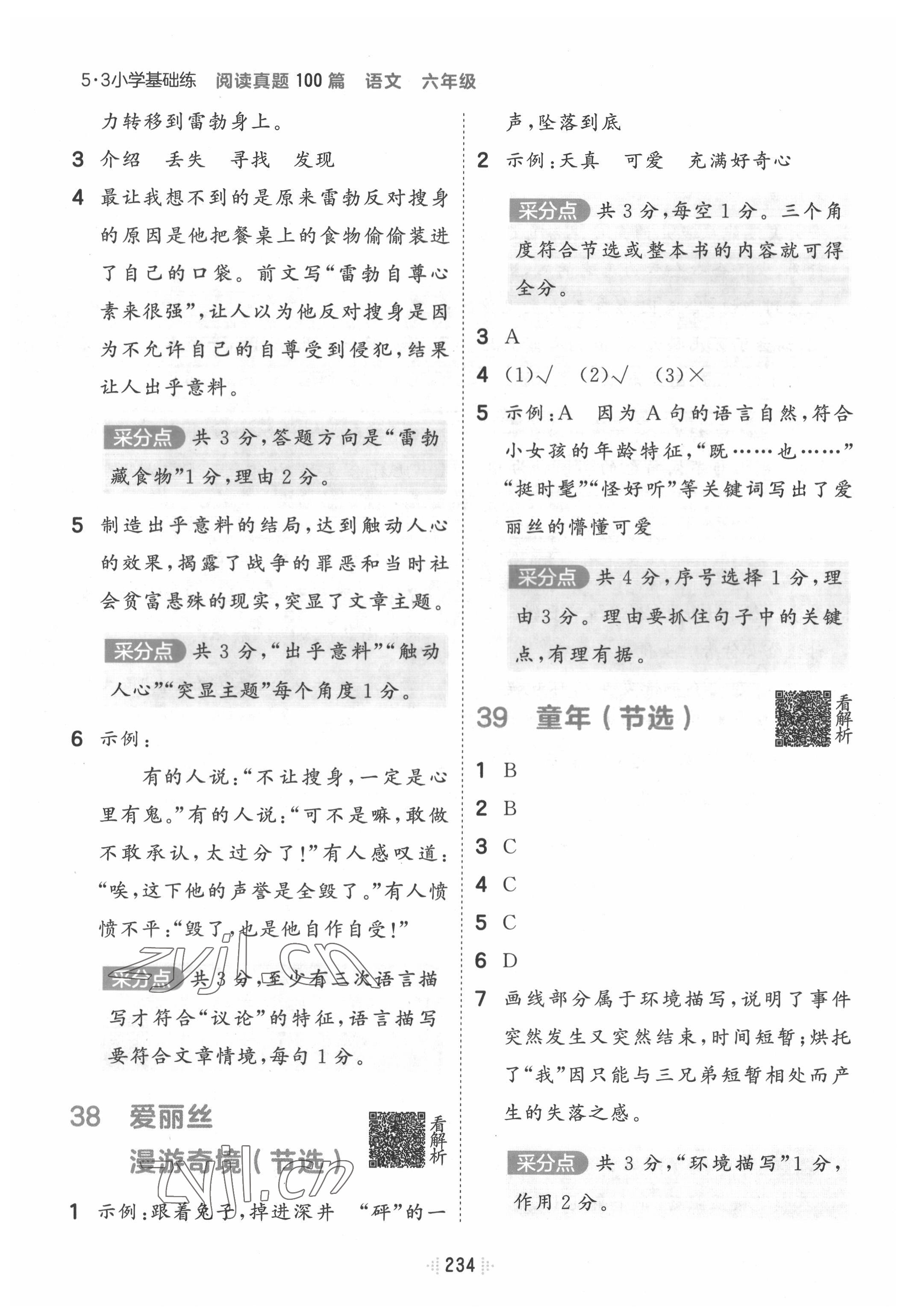 《2022年阅读真题100篇六年级语文》