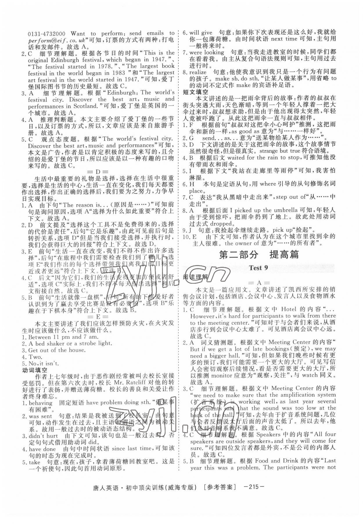 注:目前有些书本章节名称可能整理的还不是很完善,但都是按照顺序排列的,请同学们按照顺序仔细查找。练习册 2022年唐人英语初中顶尖训练中考威海专版54制 答案主要是用来给同学们做完题方便对答案用的,请勿直接抄袭。