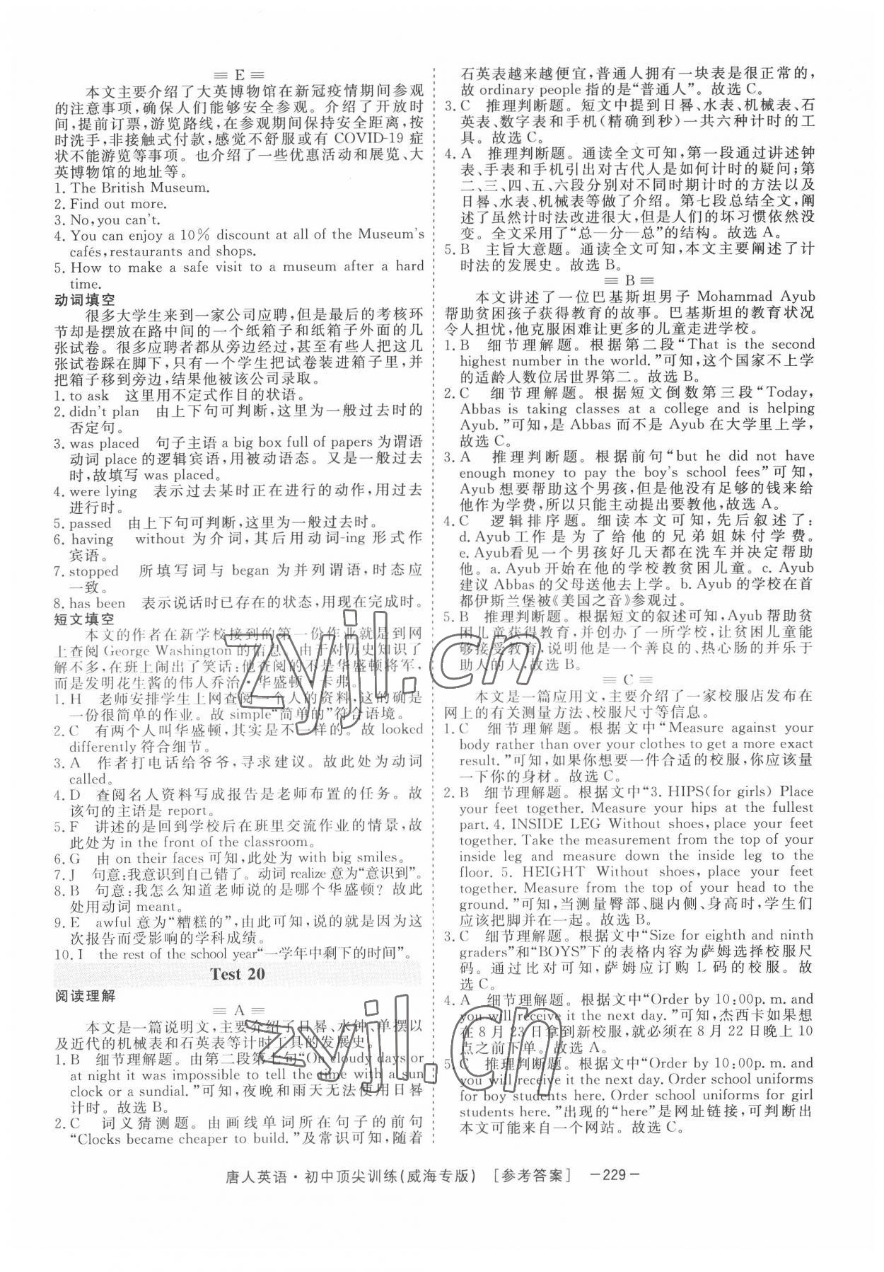 注:目前有些书本章节名称可能整理的还不是很完善,但都是按照顺序排列的,请同学们按照顺序仔细查找。练习册 2022年唐人英语初中顶尖训练中考威海专版54制 答案主要是用来给同学们做完题方便对答案用的,请勿直接抄袭。