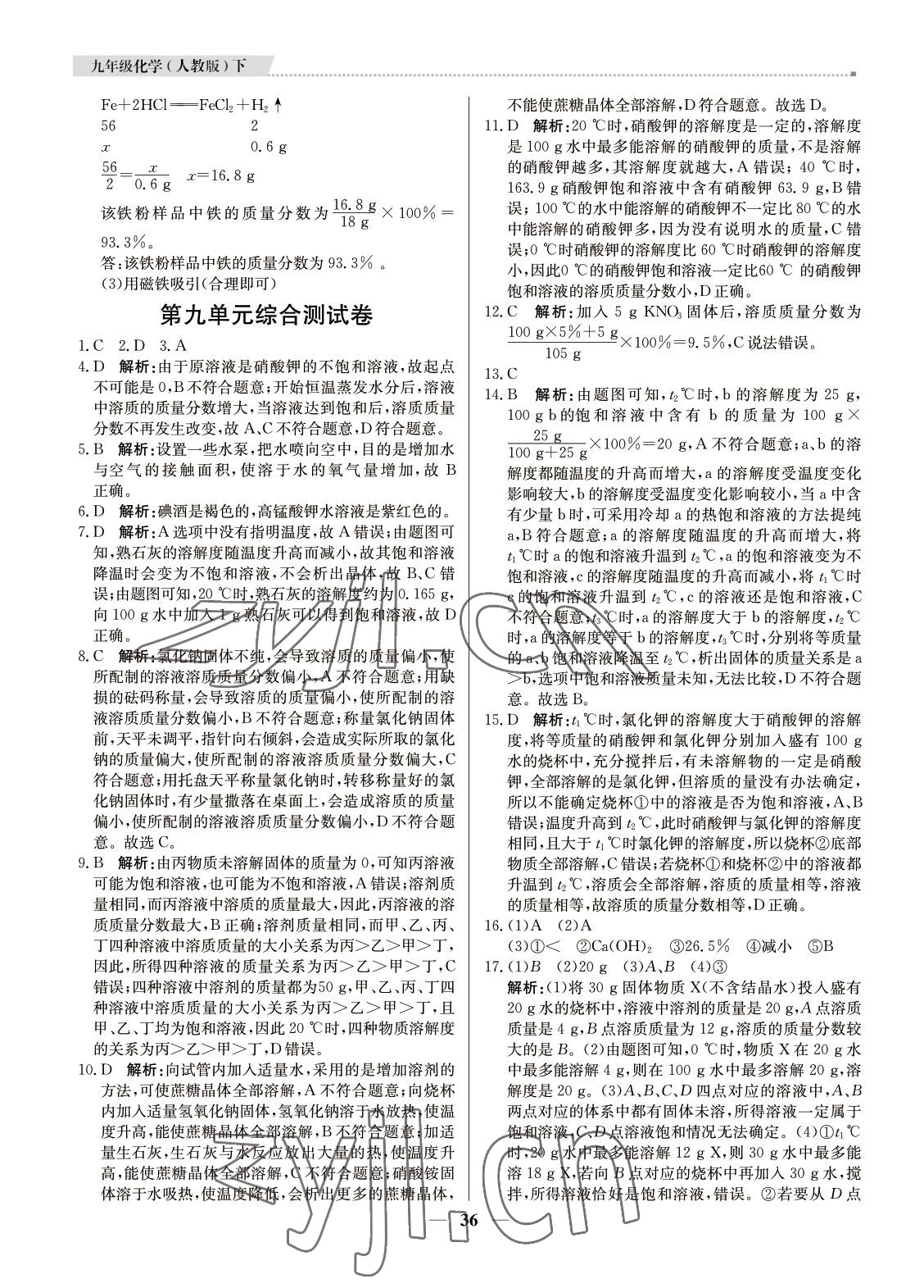注:目前有些书本章节名称可能整理的还不是很完善,但都是按照顺序排列的,请同学们按照顺序仔细查找。练习册 2022年提分教练九年级化学下册人教版东莞专用 答案主要是用来给同学们做完题方便对答案用的,请勿直接抄袭。