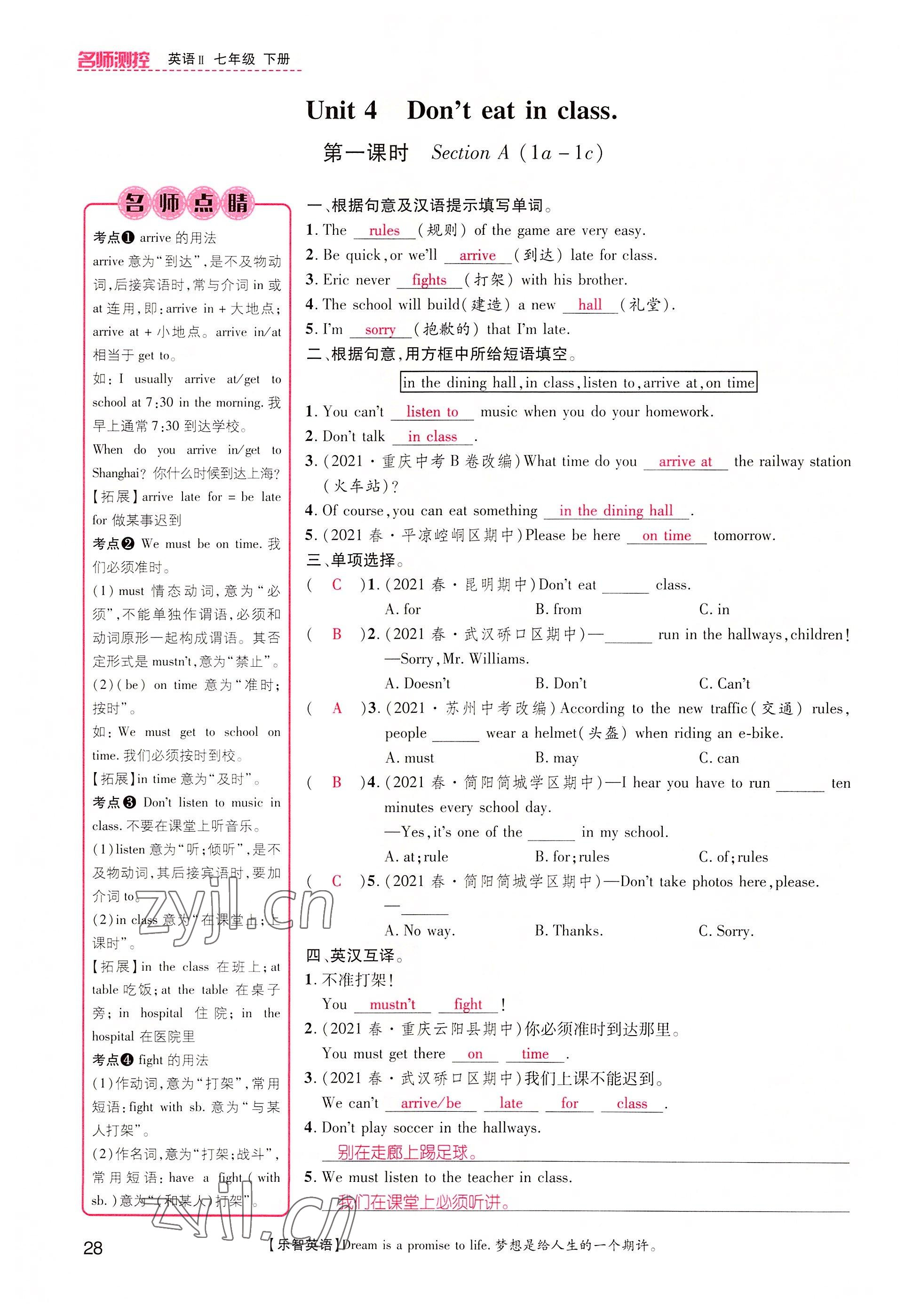 注:目前有些书本章节名称可能整理的还不是很完善,但都是按照顺序排列的,请同学们按照顺序仔细查找。练习册 2022年名师测控七年级英语下册人教版山西专版 答案主要是用来给同学们做完题方便对答案用的,请勿直接抄袭。