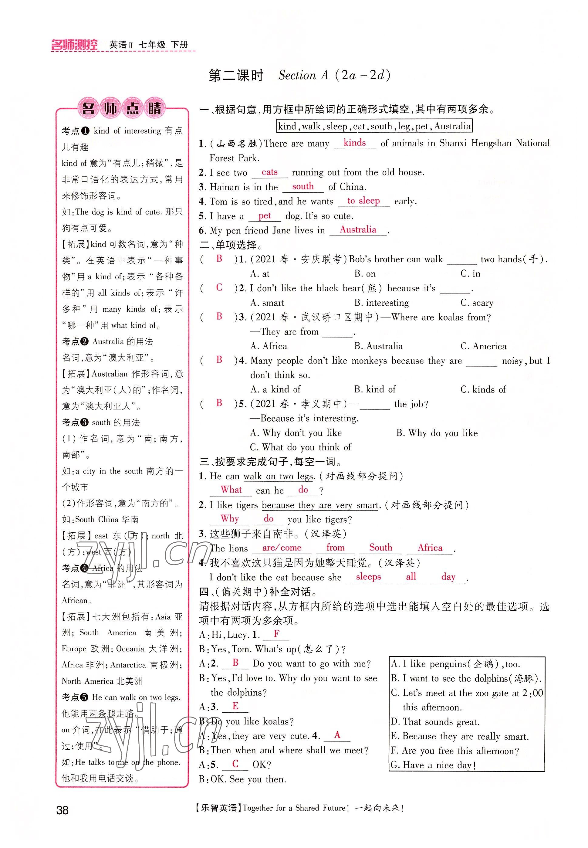 注:目前有些书本章节名称可能整理的还不是很完善,但都是按照顺序排列的,请同学们按照顺序仔细查找。练习册 2022年名师测控七年级英语下册人教版山西专版 答案主要是用来给同学们做完题方便对答案用的,请勿直接抄袭。