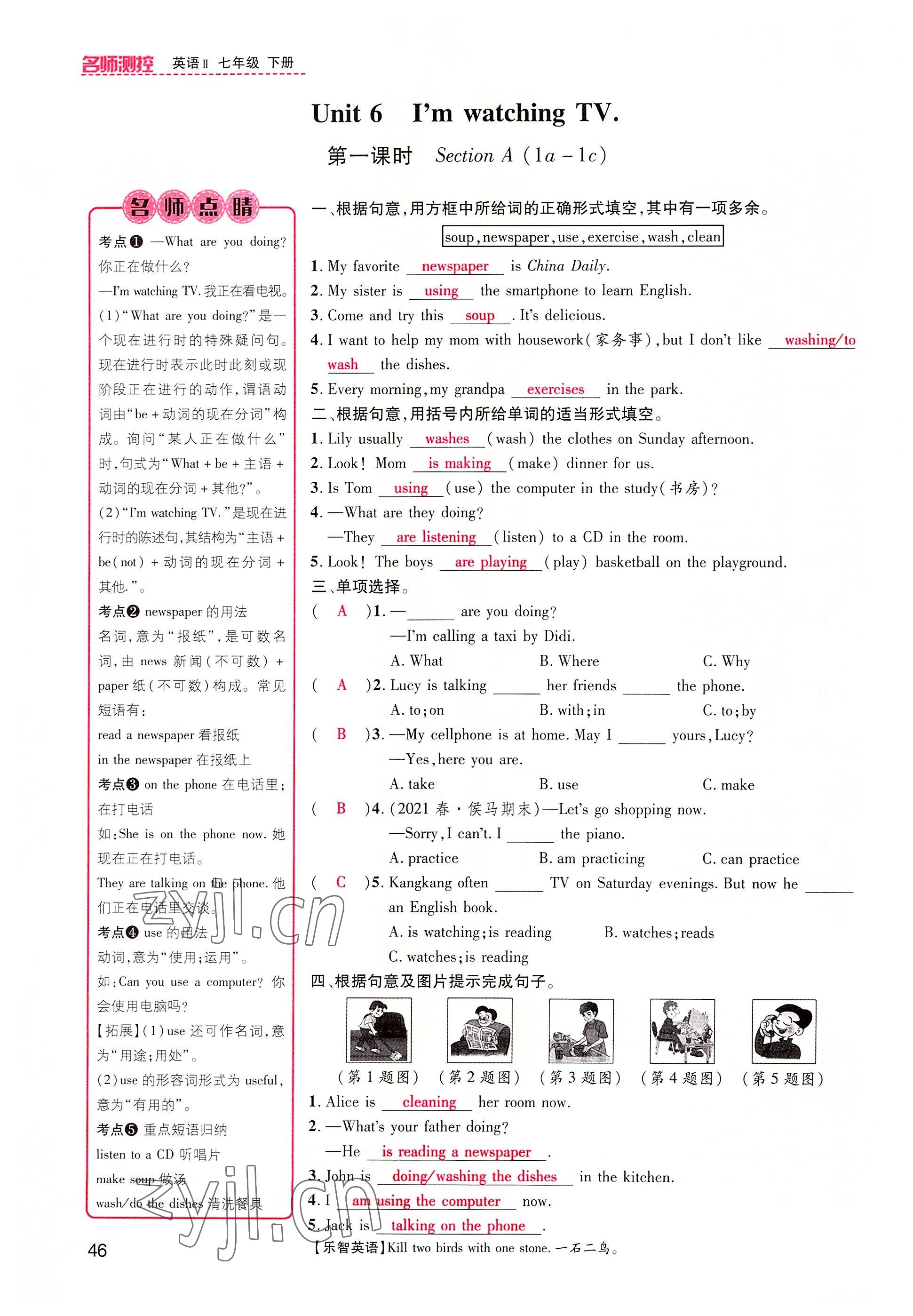 注:目前有些书本章节名称可能整理的还不是很完善,但都是按照顺序排列的,请同学们按照顺序仔细查找。练习册 2022年名师测控七年级英语下册人教版山西专版 答案主要是用来给同学们做完题方便对答案用的,请勿直接抄袭。