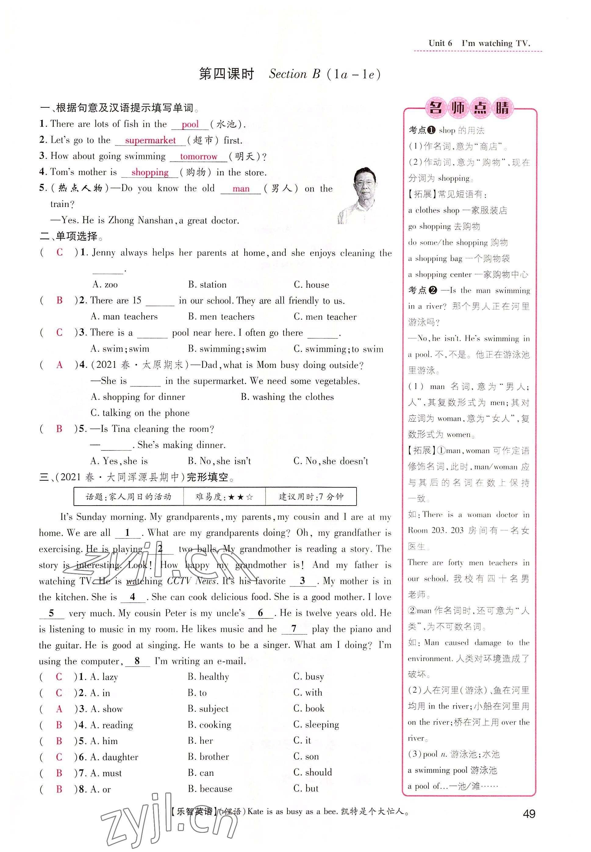 注:目前有些书本章节名称可能整理的还不是很完善,但都是按照顺序排列的,请同学们按照顺序仔细查找。练习册 2022年名师测控七年级英语下册人教版山西专版 答案主要是用来给同学们做完题方便对答案用的,请勿直接抄袭。