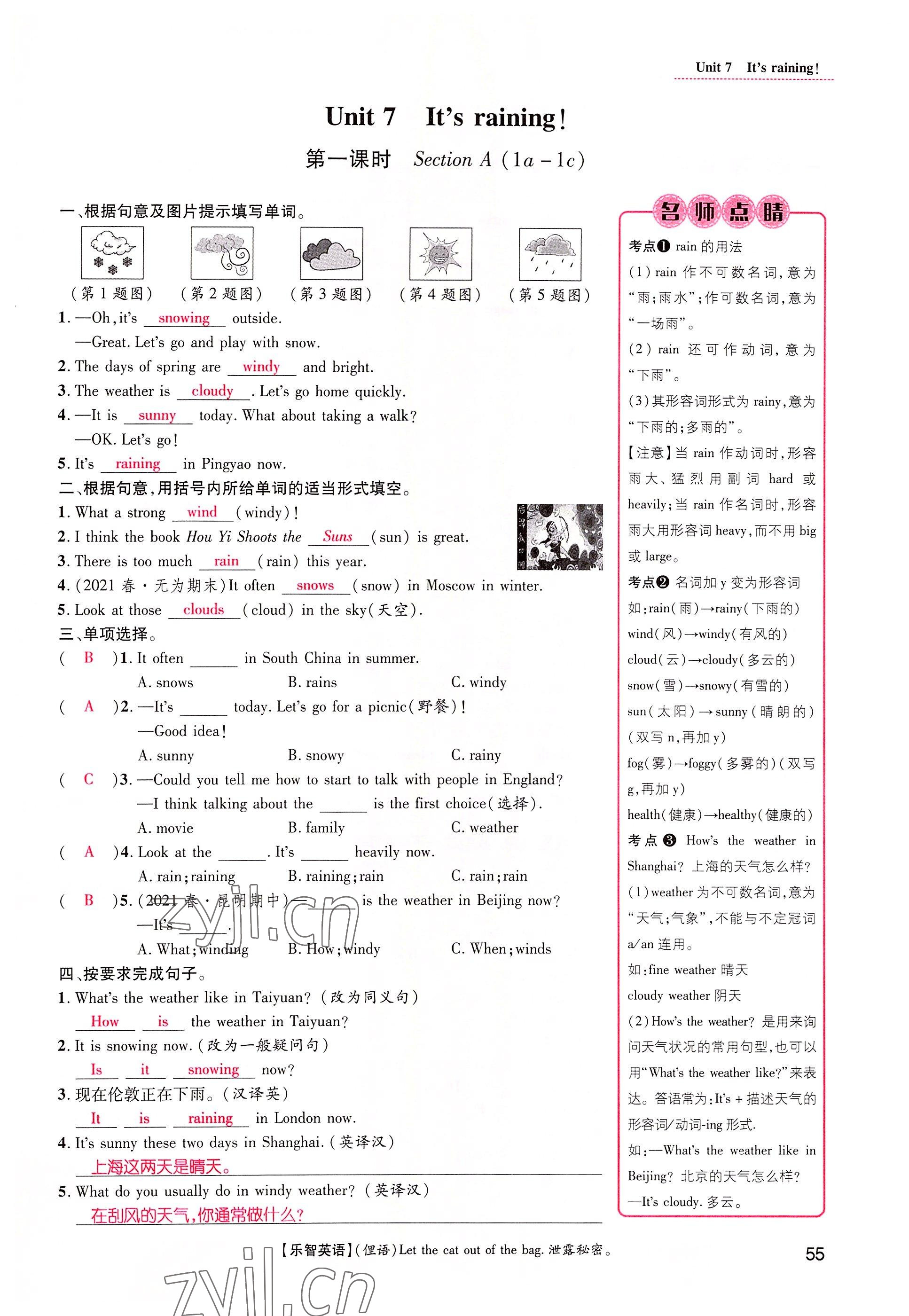 注:目前有些书本章节名称可能整理的还不是很完善,但都是按照顺序排列的,请同学们按照顺序仔细查找。练习册 2022年名师测控七年级英语下册人教版山西专版 答案主要是用来给同学们做完题方便对答案用的,请勿直接抄袭。