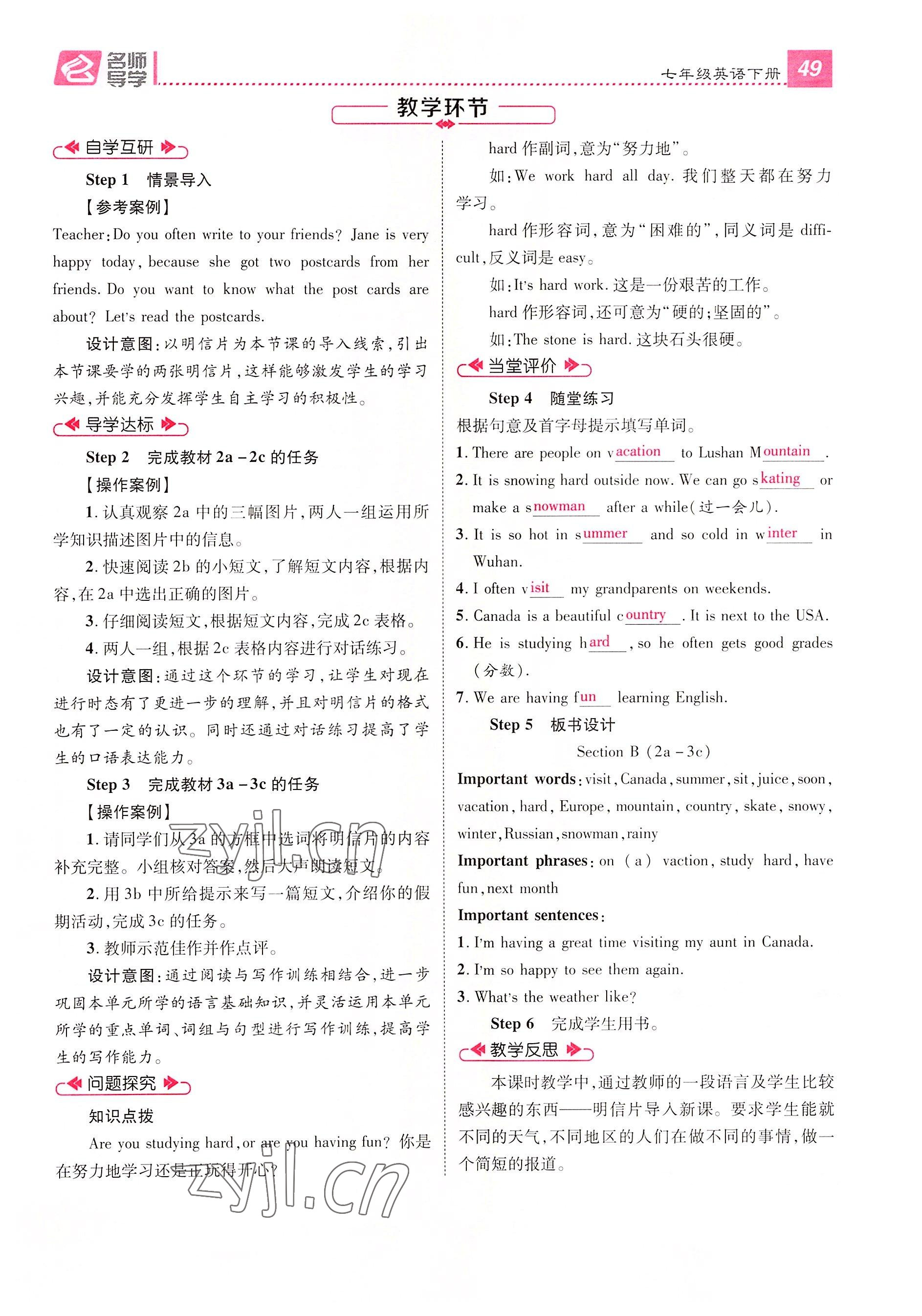 注:目前有些书本章节名称可能整理的还不是很完善,但都是按照顺序排列的,请同学们按照顺序仔细查找。练习册 2022年名师测控七年级英语下册人教版山西专版 答案主要是用来给同学们做完题方便对答案用的,请勿直接抄袭。
