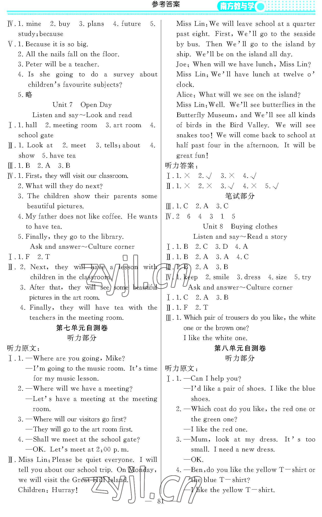 注:目前有些书本章节名称可能整理的还不是很完善,但都是按照顺序排列的,请同学们按照顺序仔细查找。练习册 2022年培优A计划五年级英语下册沪教版深圳专用 答案主要是用来给同学们做完题方便对答案用的,请勿直接抄袭。
