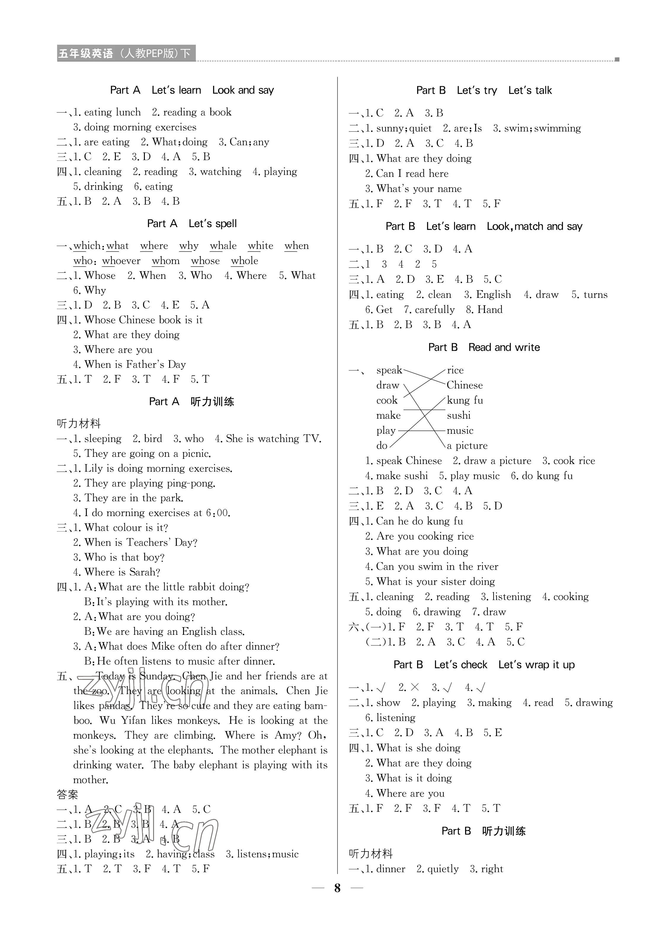 注:目前有些书本章节名称可能整理的还不是很完善,但都是按照顺序排列的,请同学们按照顺序仔细查找。练习册 2022年培优A计划五年级英语下册人教PEP版 答案主要是用来给同学们做完题方便对答案用的,请勿直接抄袭。