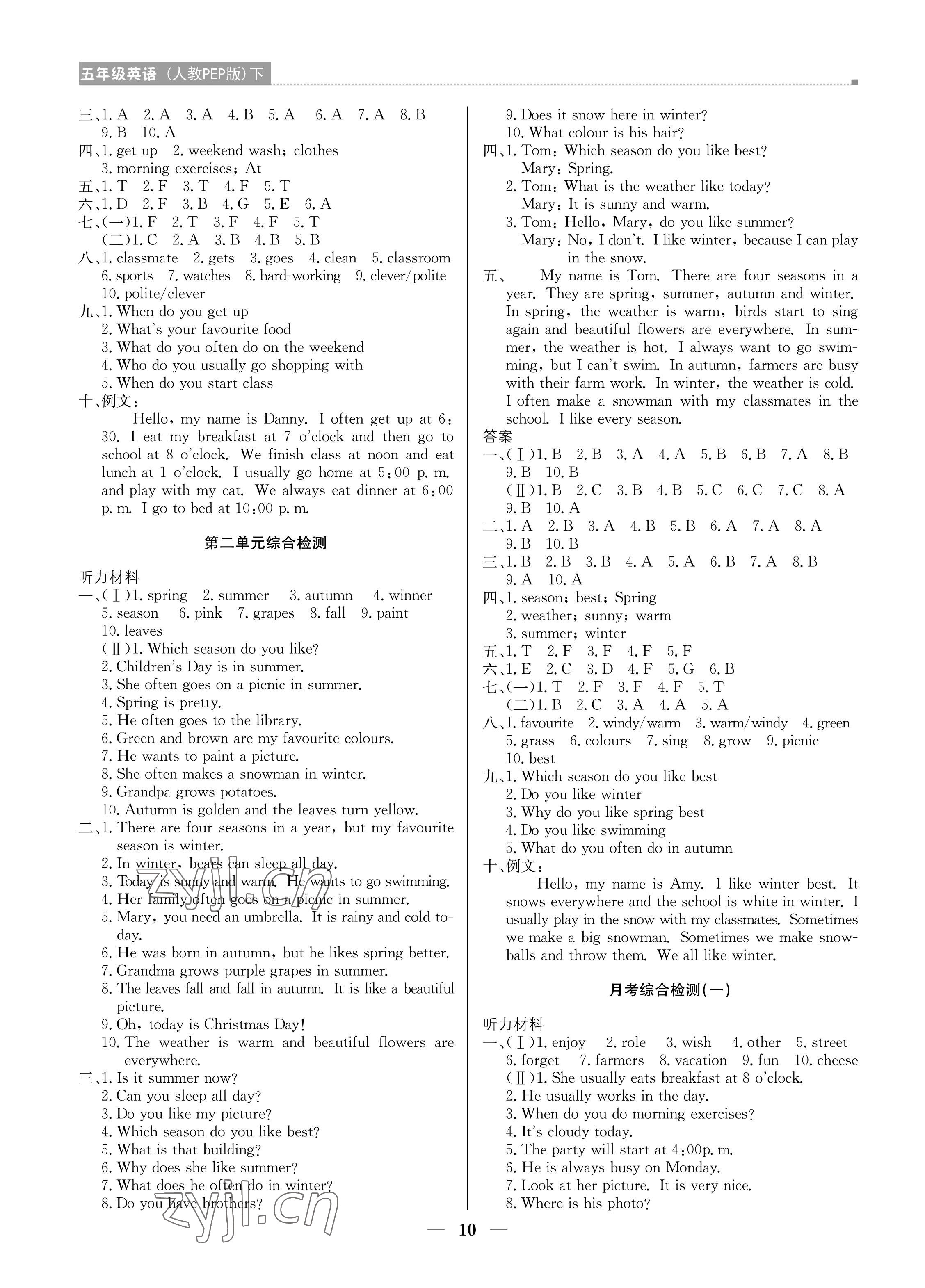 注:目前有些书本章节名称可能整理的还不是很完善,但都是按照顺序排列的,请同学们按照顺序仔细查找。练习册 2022年培优A计划五年级英语下册人教PEP版 答案主要是用来给同学们做完题方便对答案用的,请勿直接抄袭。