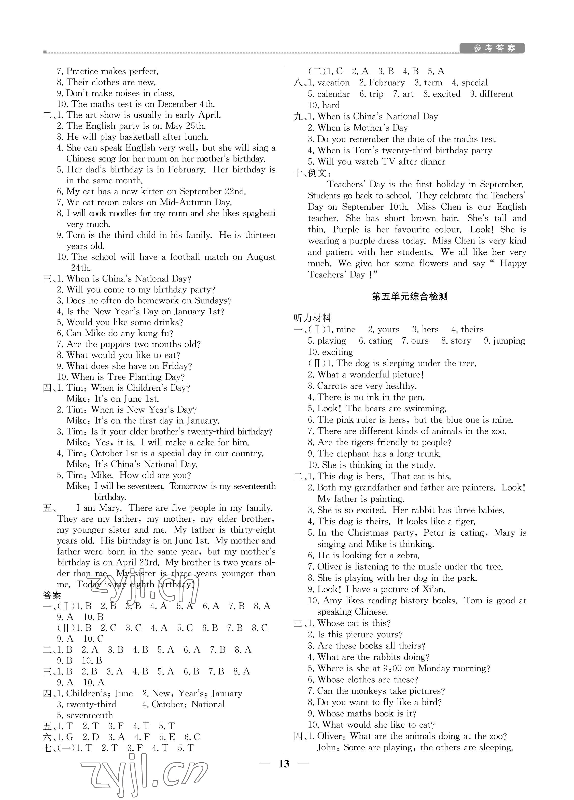 注:目前有些书本章节名称可能整理的还不是很完善,但都是按照顺序排列的,请同学们按照顺序仔细查找。练习册 2022年培优A计划五年级英语下册人教PEP版 答案主要是用来给同学们做完题方便对答案用的,请勿直接抄袭。