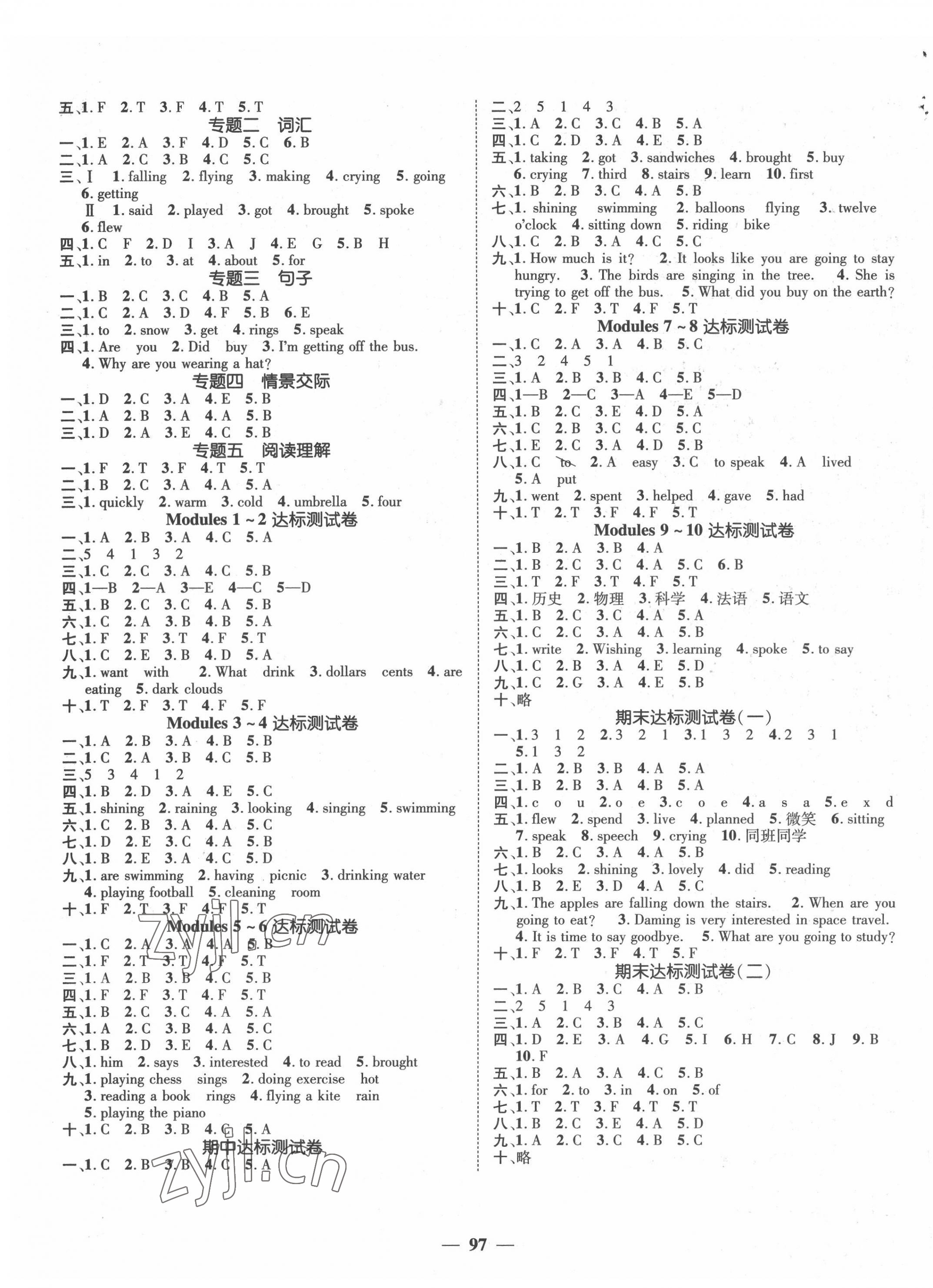 注:目前有些书本章节名称可能整理的还不是很完善,但都是按照顺序排列的,请同学们按照顺序仔细查找。练习册 2022年名师测控六年级英语下册外研版 答案主要是用来给同学们做完题方便对答案用的,请勿直接抄袭。