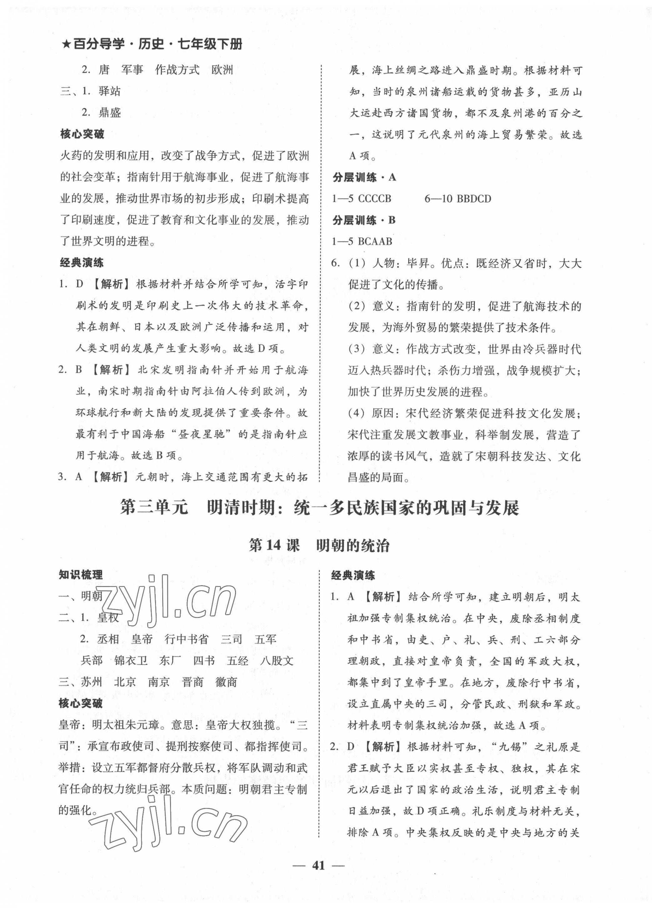 注:目前有些书本章节名称可能整理的还不是很完善,但都是按照顺序排列的,请同学们按照顺序仔细查找。练习册 2022年百分导学七年级历史下册人教版 答案主要是用来给同学们做完题方便对答案用的,请勿直接抄袭。
