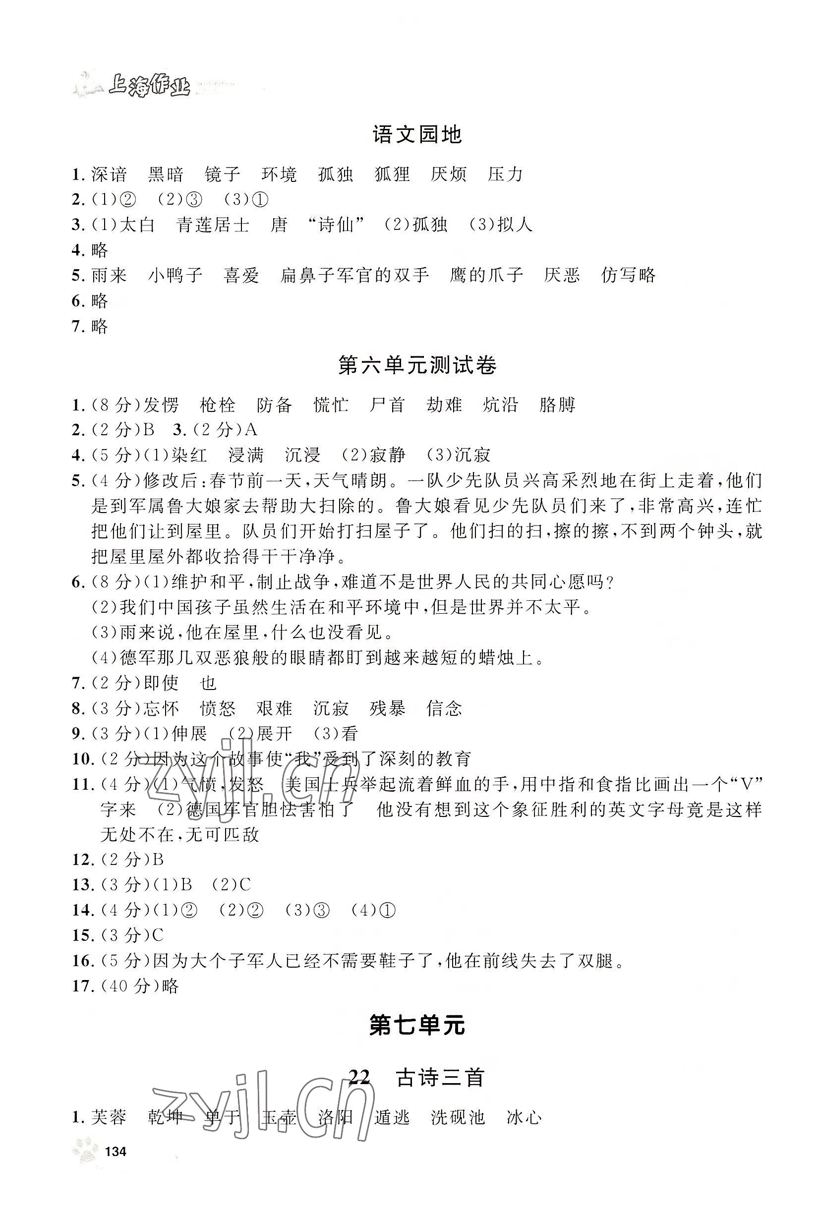 注:目前有些书本章节名称可能整理的还不是很完善,但都是按照顺序排列的,请同学们按照顺序仔细查找。练习册 2022年上海作业四年级语文下册人教版54制 答案主要是用来给同学们做完题方便对答案用的,请勿直接抄袭。