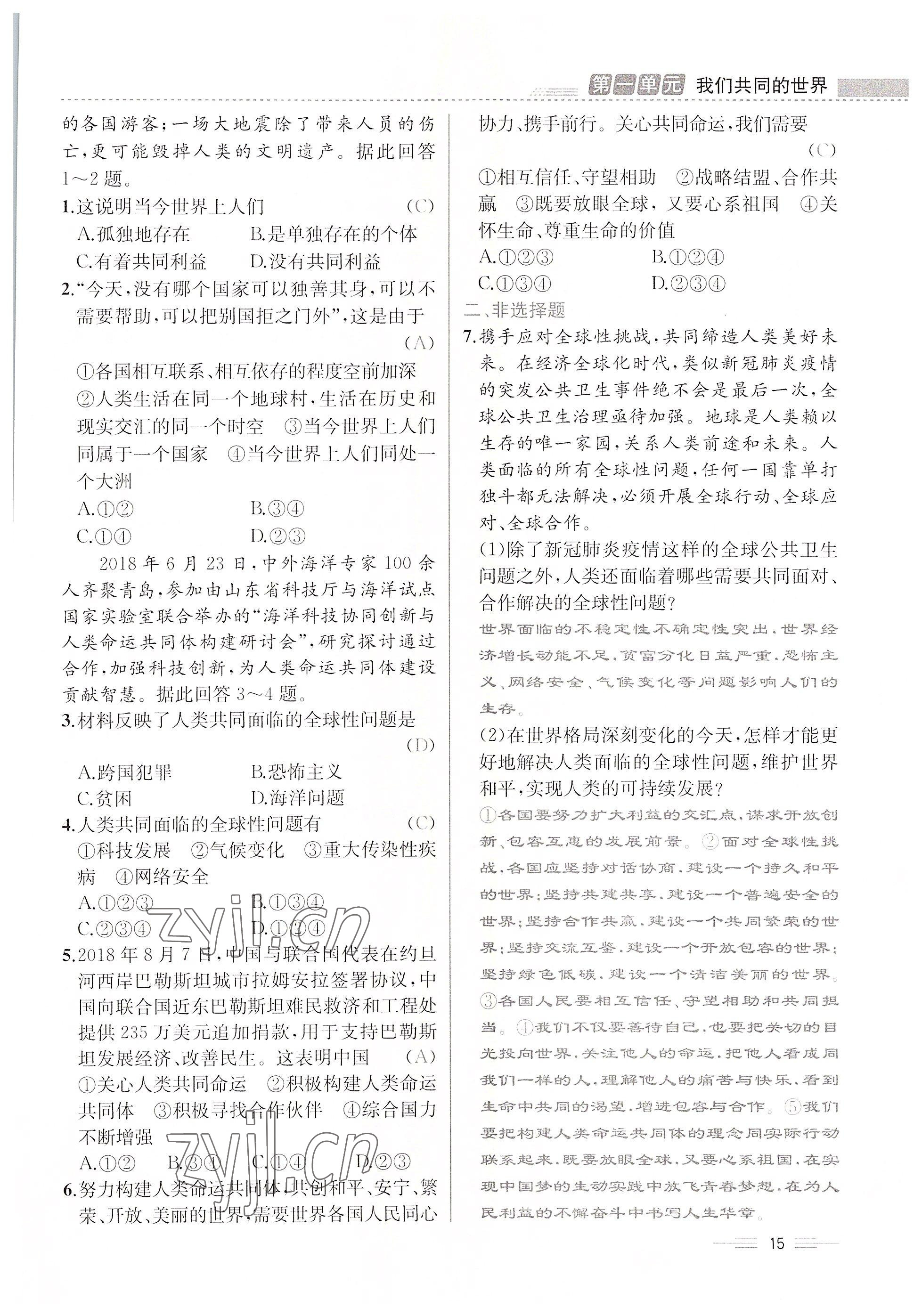 注:目前有些书本章节名称可能整理的还不是很完善,但都是按照顺序排列的,请同学们按照顺序仔细查找。练习册 2022年人教金学典同步解析与测评九年级道德与法治下册人教版云南专版 答案主要是用来给同学们做完题方便对答案用的,请勿直接抄袭。