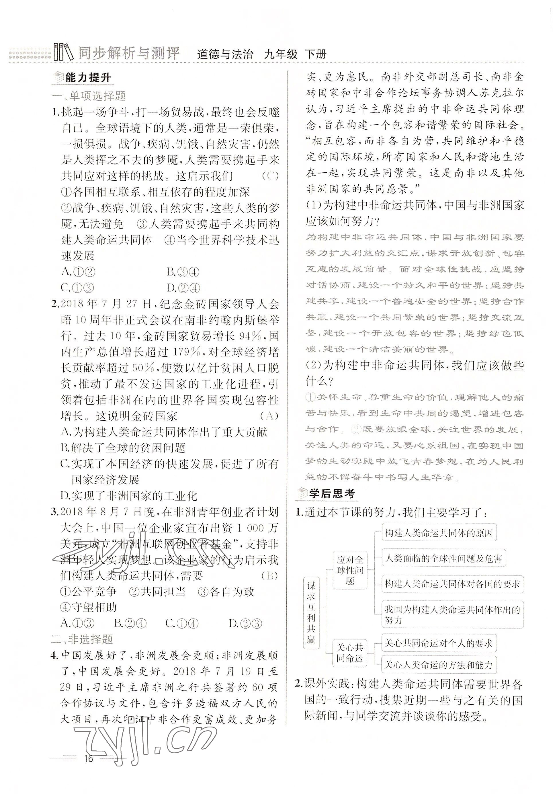 2022年人教金学典同步解析与测评九年级道德与法治下册人教版云南专版