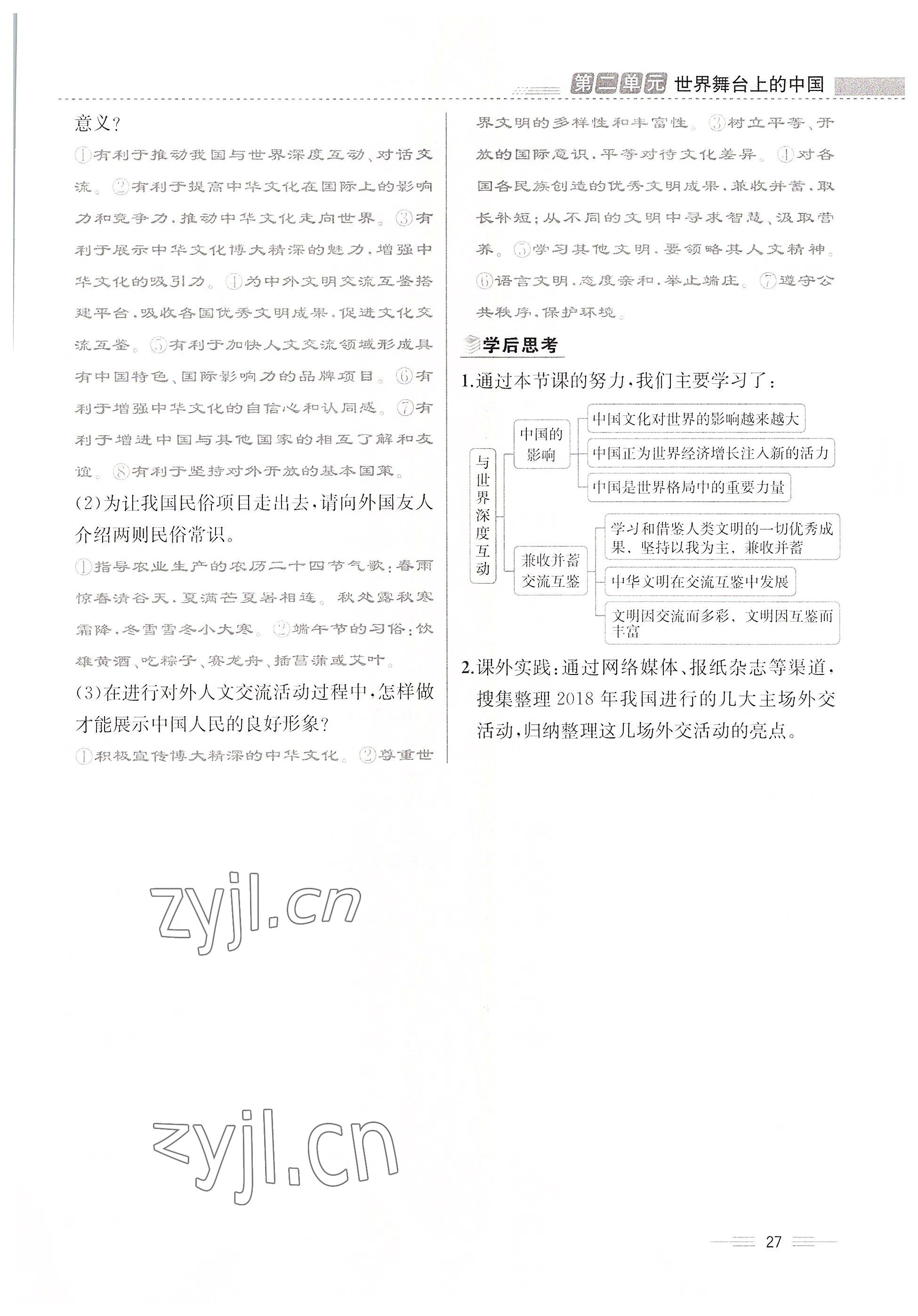 注:目前有些书本章节名称可能整理的还不是很完善,但都是按照顺序排列的,请同学们按照顺序仔细查找。练习册 2022年人教金学典同步解析与测评九年级道德与法治下册人教版云南专版 答案主要是用来给同学们做完题方便对答案用的,请勿直接抄袭。