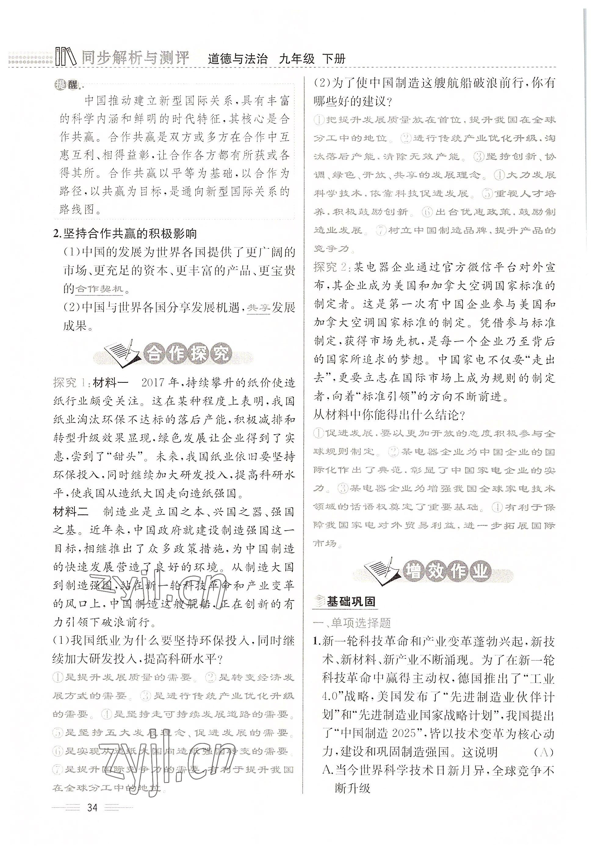 2022年人教金学典同步解析与测评九年级道德与法治下册人教版云南专版