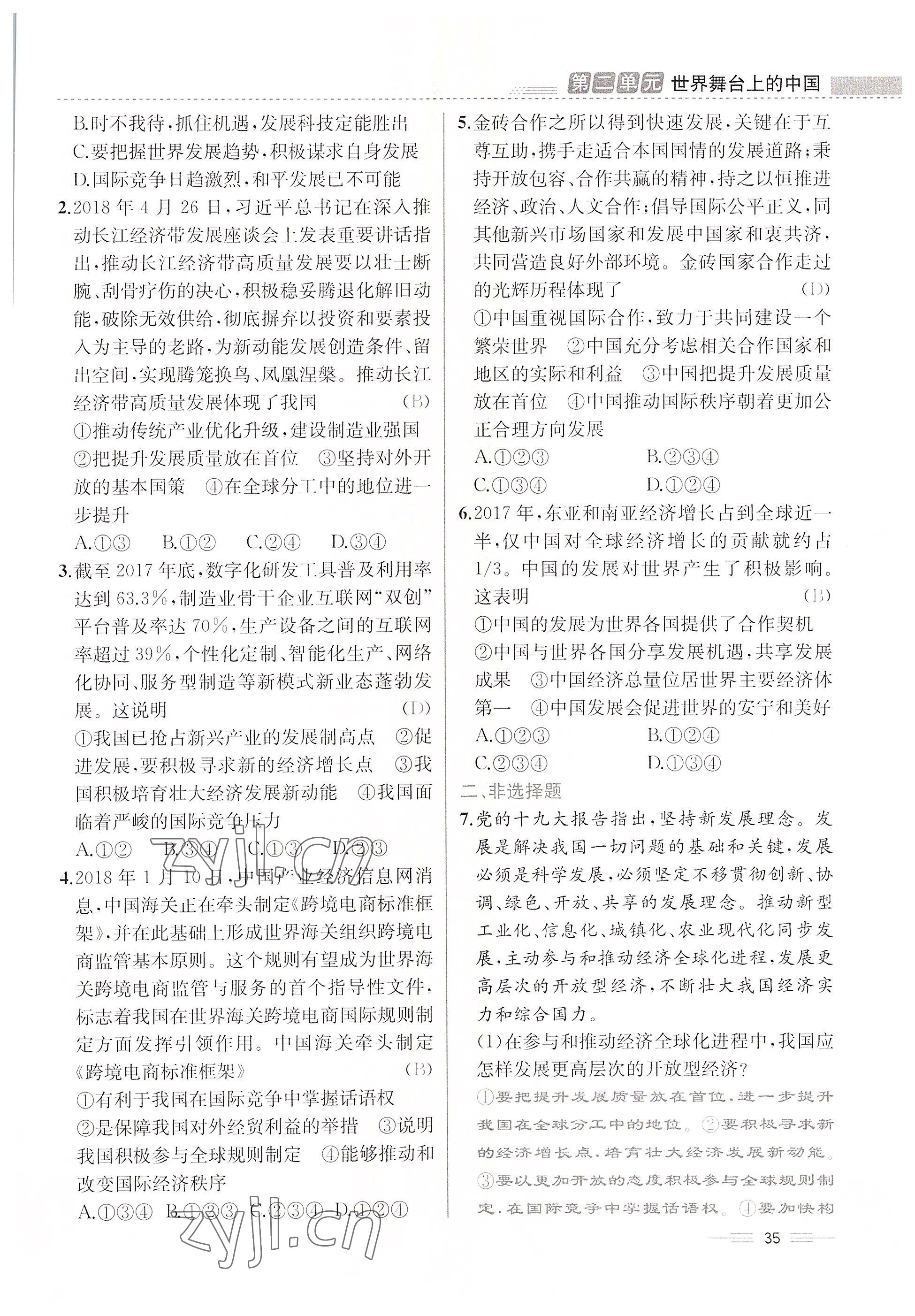 注:目前有些书本章节名称可能整理的还不是很完善,但都是按照顺序排列的,请同学们按照顺序仔细查找。练习册 2022年人教金学典同步解析与测评九年级道德与法治下册人教版云南专版 答案主要是用来给同学们做完题方便对答案用的,请勿直接抄袭。