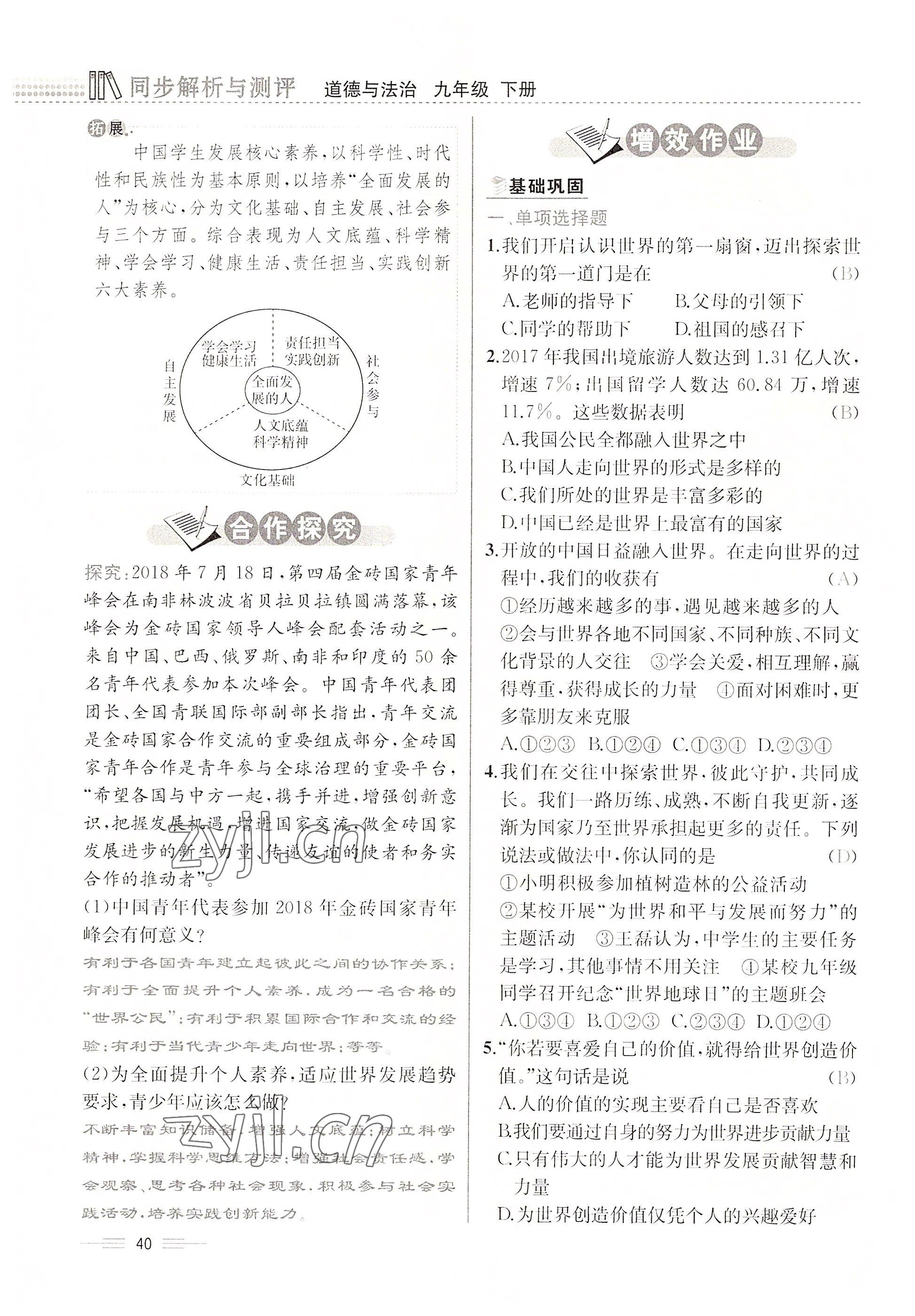 2022年人教金学典同步解析与测评九年级道德与法治下册人教版云南专版