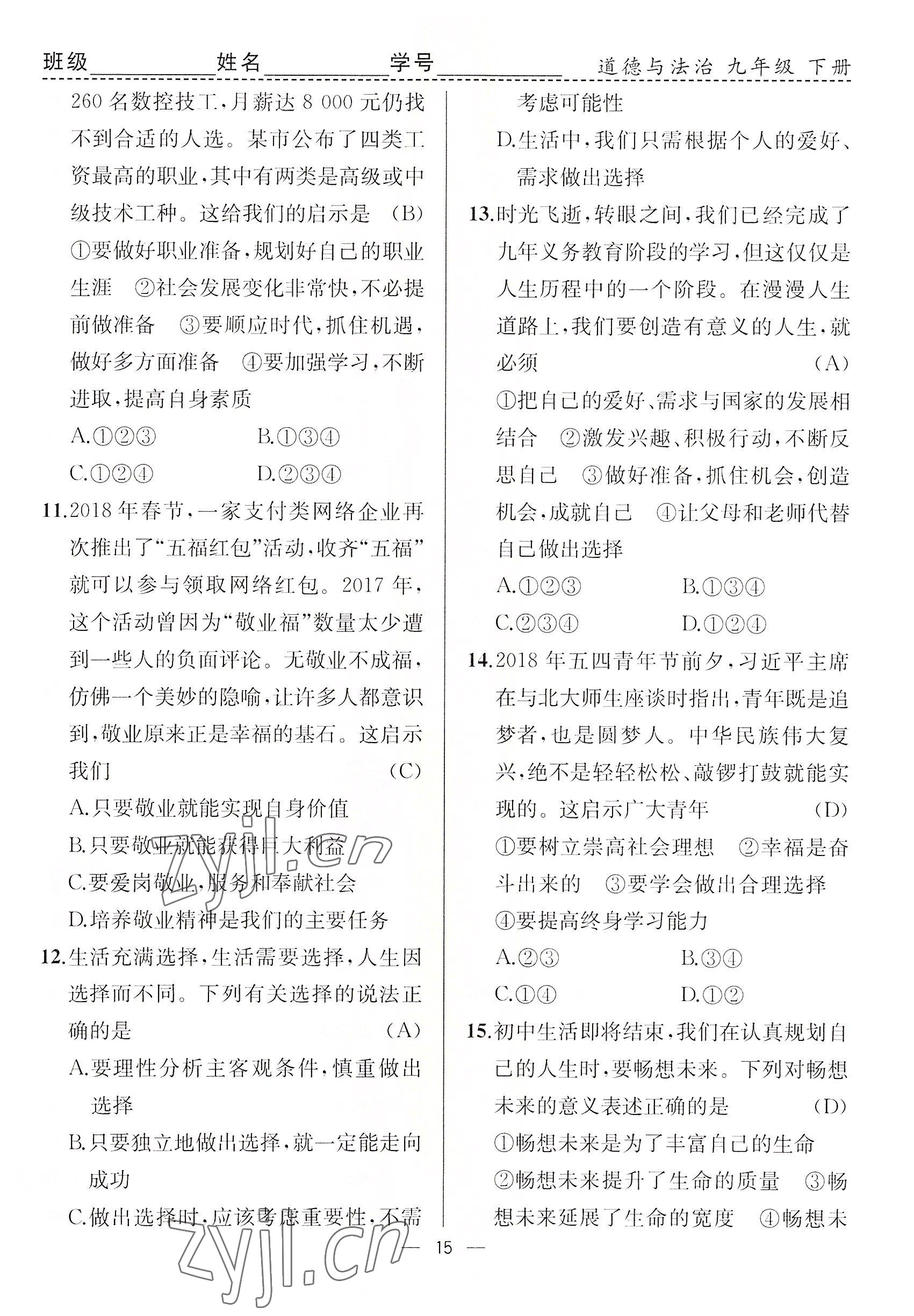 注:目前有些书本章节名称可能整理的还不是很完善,但都是按照顺序排列的,请同学们按照顺序仔细查找。练习册 2022年人教金学典同步解析与测评九年级道德与法治下册人教版云南专版 答案主要是用来给同学们做完题方便对答案用的,请勿直接抄袭。