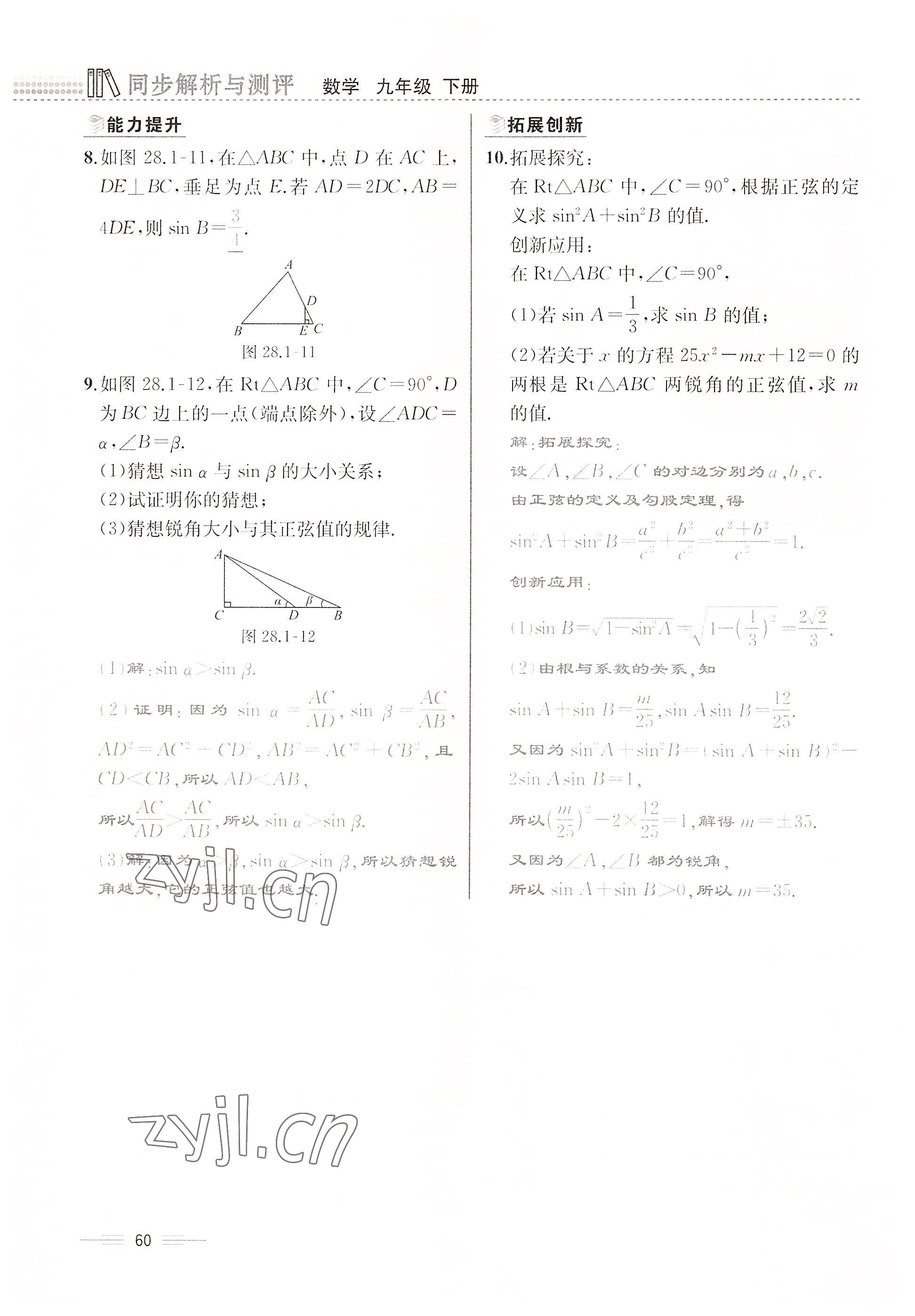 2022年人教金学典同步解析与测评九年级数学下册人教版云南专版