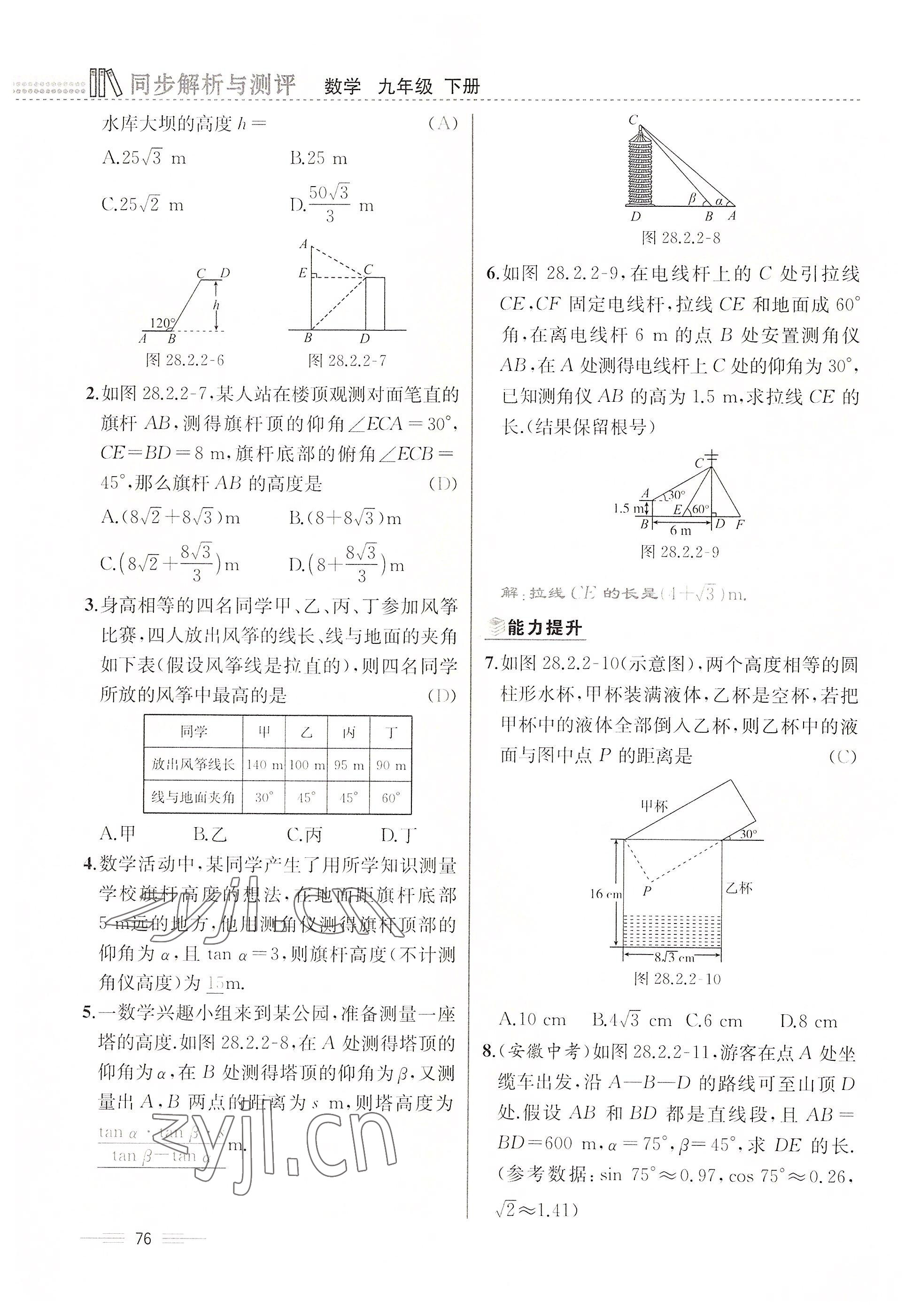 2022年人教金学典同步解析与测评九年级数学下册人教版云南专版