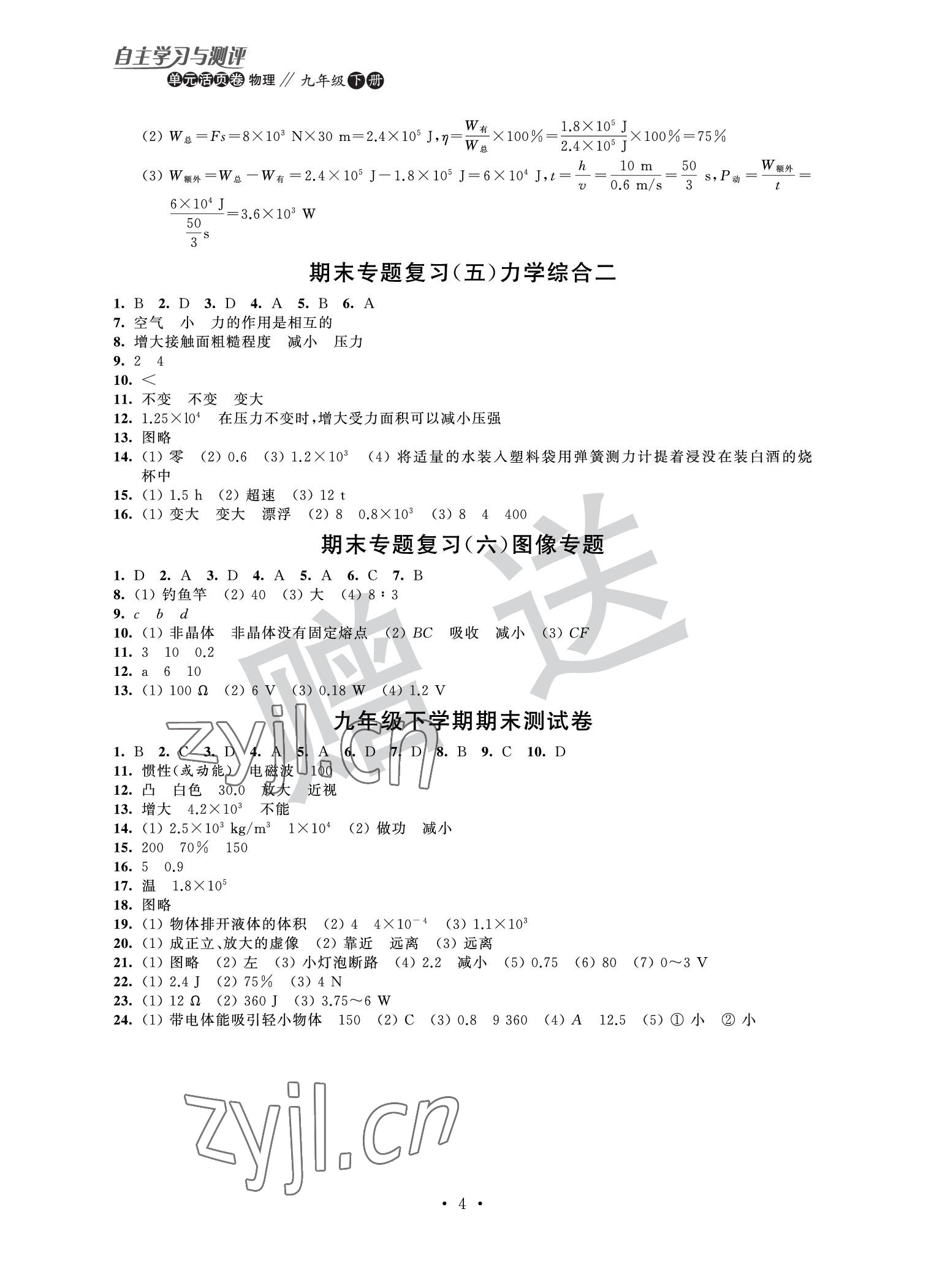 注:目前有些书本章节名称可能整理的还不是很完善,但都是按照顺序排列的,请同学们按照顺序仔细查找。练习册 2022年自主学习与测评单元活页卷九年级物理下册 答案主要是用来给同学们做完题方便对答案用的,请勿直接抄袭。