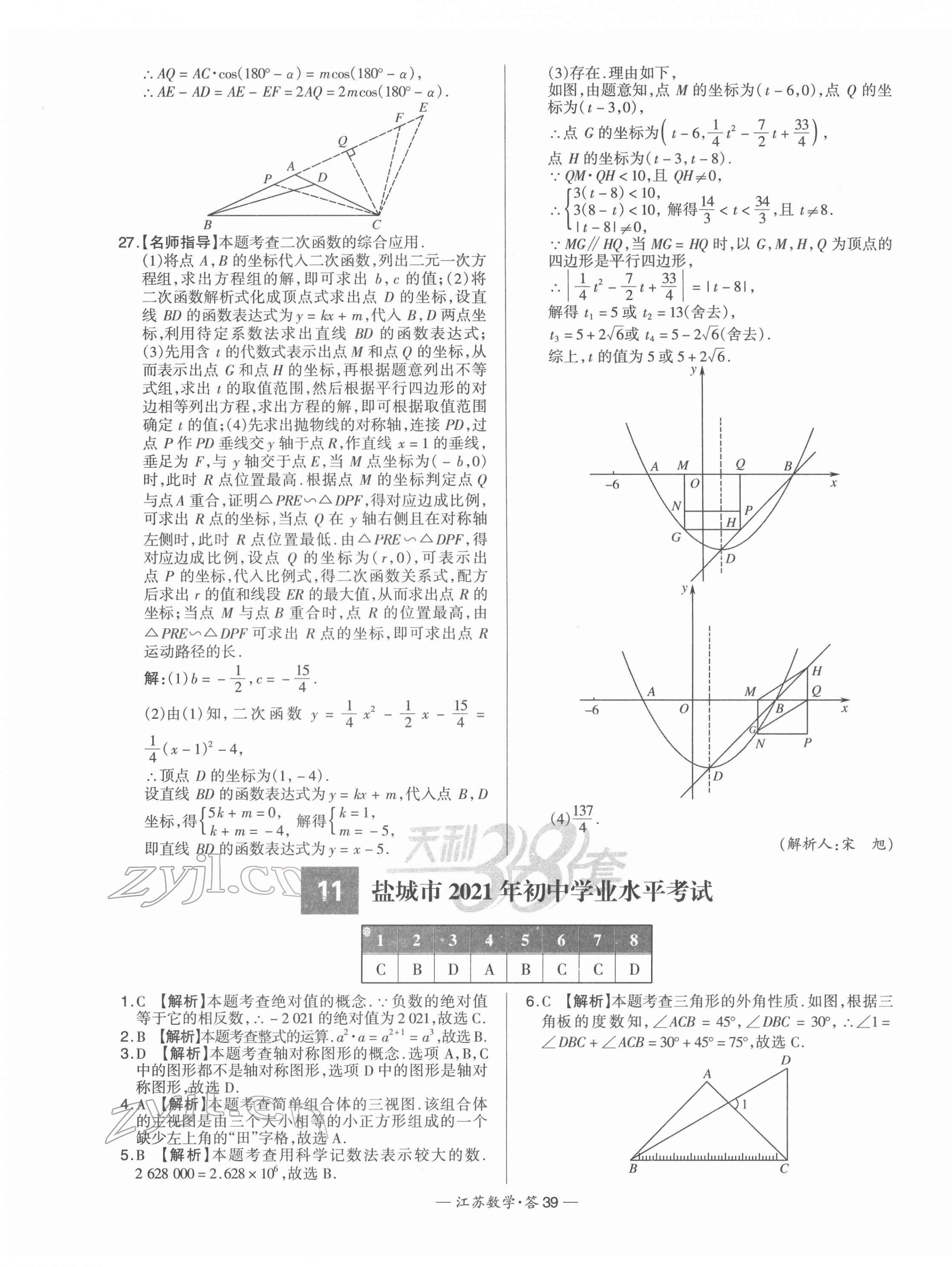 注:目前有些书本章节名称可能整理的还不是很完善,但都是按照顺序排列的,请同学们按照顺序仔细查找。练习册 2022年天利38套中考试题精选数学江苏专版 答案主要是用来给同学们做完题方便对答案用的,请勿直接抄袭。