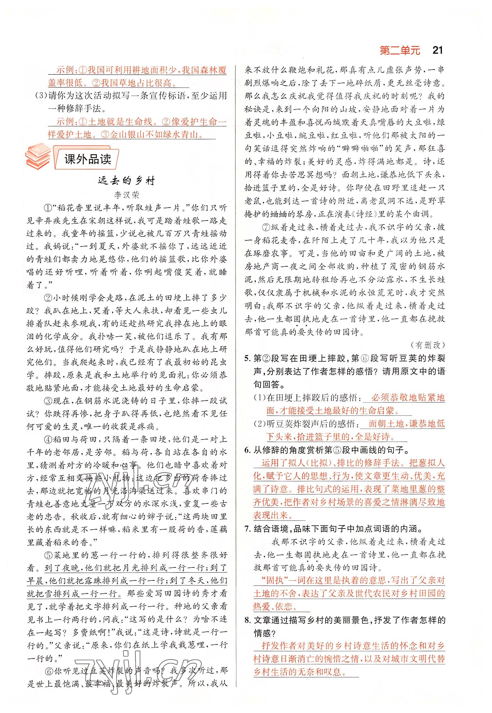 2022年课时夺冠七年级语文下册人教版黄冈孝感咸宁专版