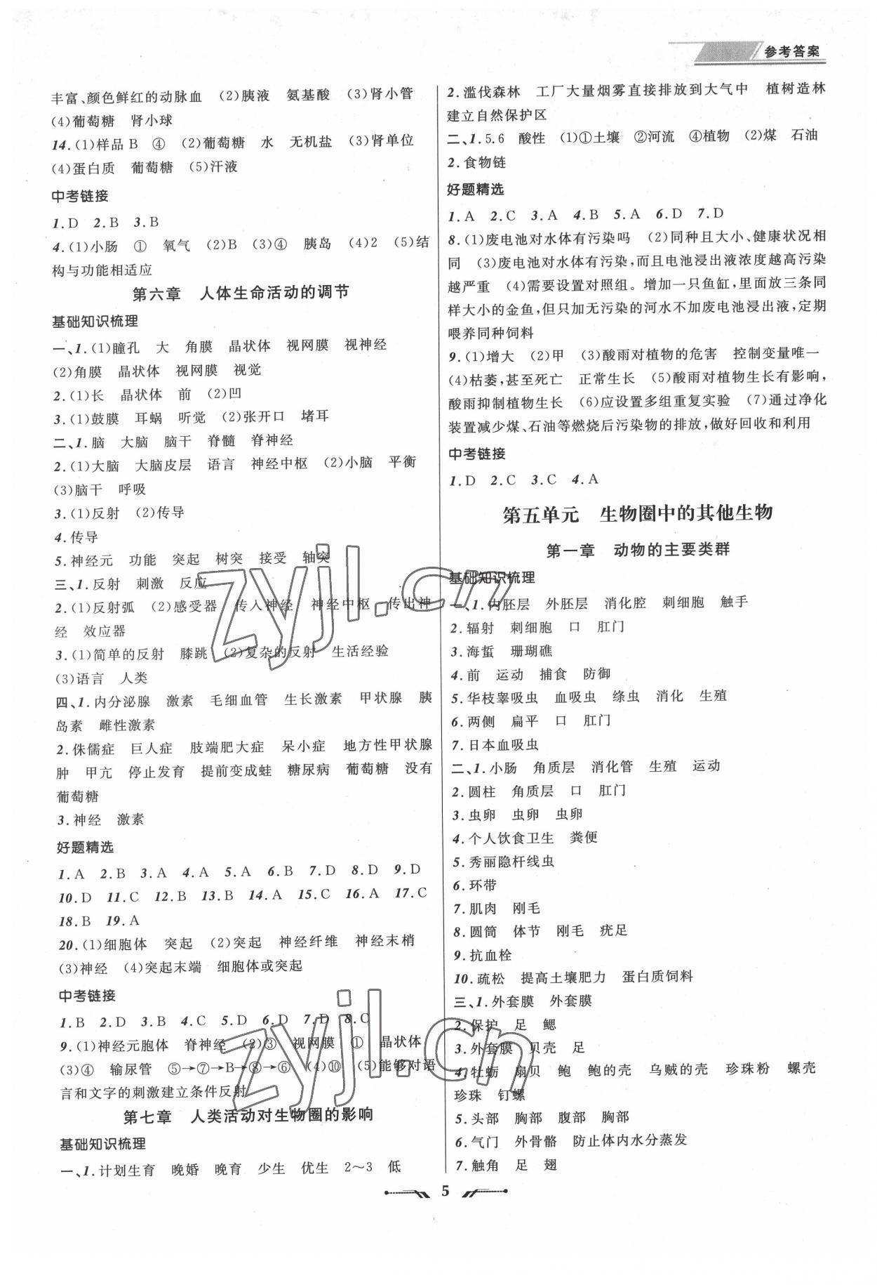 注:目前有些书本章节名称可能整理的还不是很完善,但都是按照顺序排列的,请同学们按照顺序仔细查找。练习册 2022年中考全程复习训练生物营口专版 答案主要是用来给同学们做完题方便对答案用的,请勿直接抄袭。