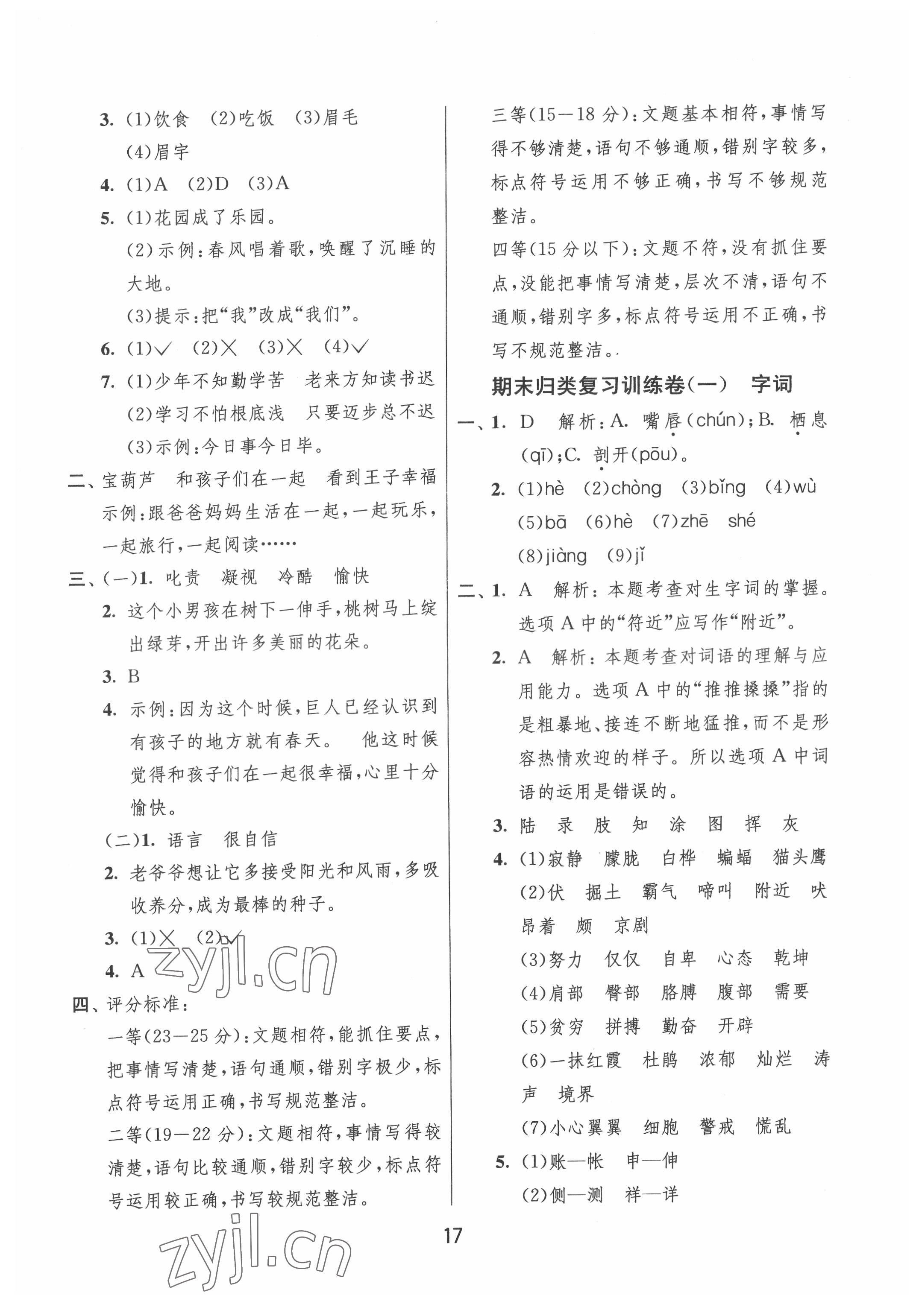 注:目前有些书本章节名称可能整理的还不是很完善,但都是按照顺序排列的,请同学们按照顺序仔细查找。练习册 2022年实验班提优大试卷四年级语文下册人教版江苏专版 答案主要是用来给同学们做完题方便对答案用的,请勿直接抄袭。