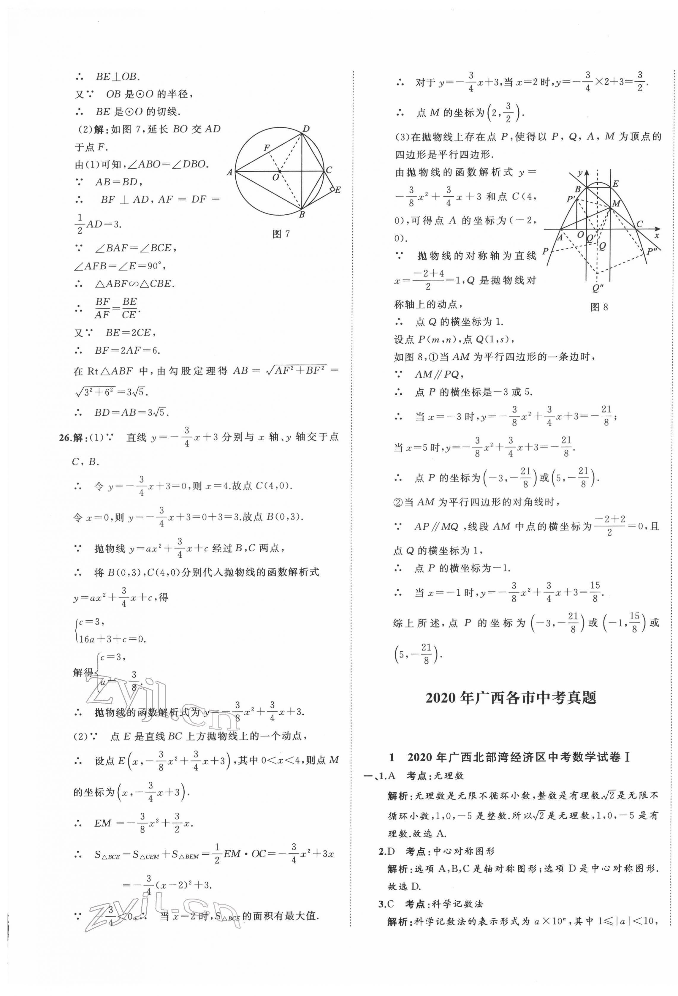2022年中考备考指南广西2年真题1年模拟试卷数学人教版
