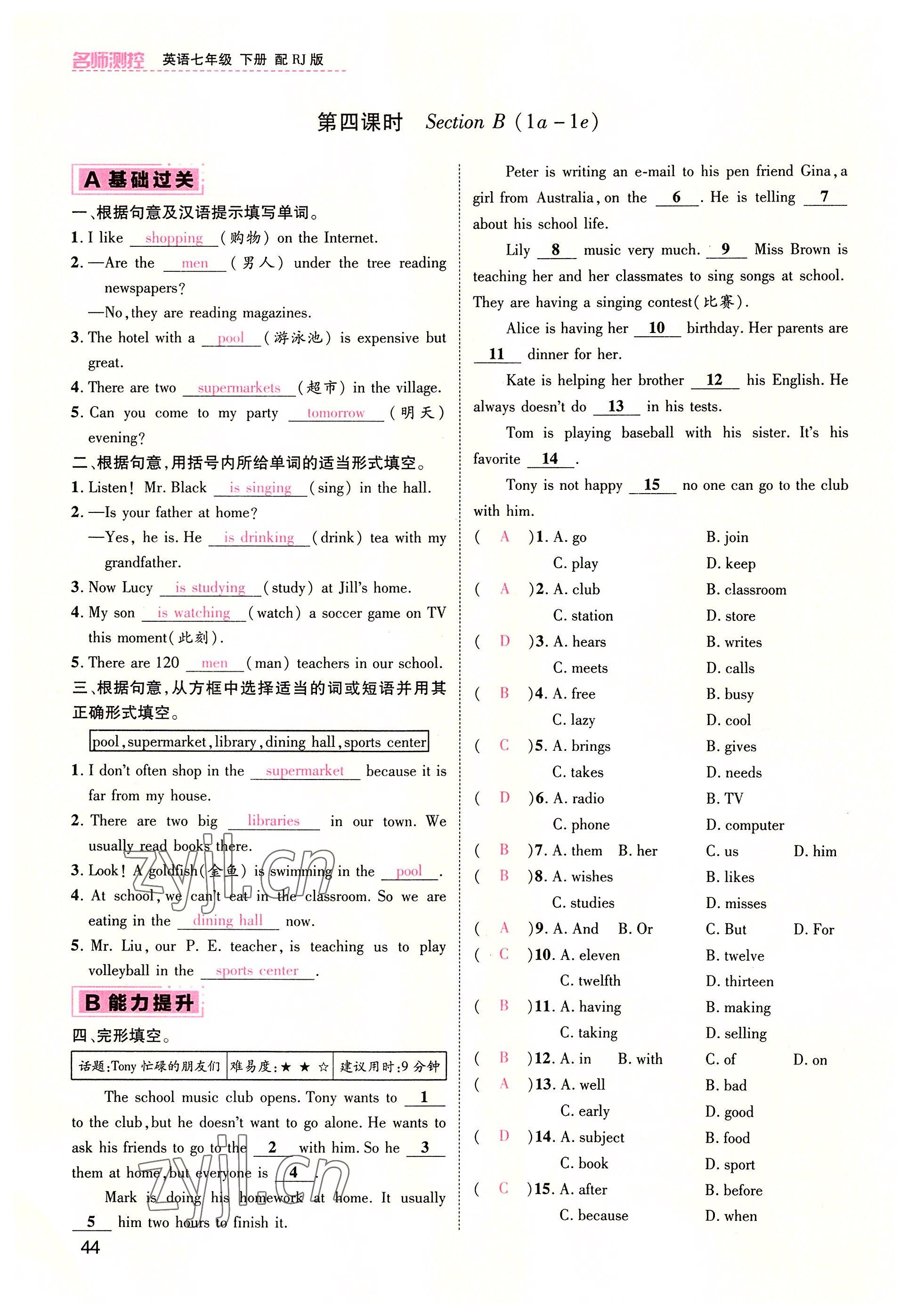 注:目前有些书本章节名称可能整理的还不是很完善,但都是按照顺序排列的,请同学们按照顺序仔细查找。练习册 2022年名师测控七年级英语下册人教版河南专版 答案主要是用来给同学们做完题方便对答案用的,请勿直接抄袭。