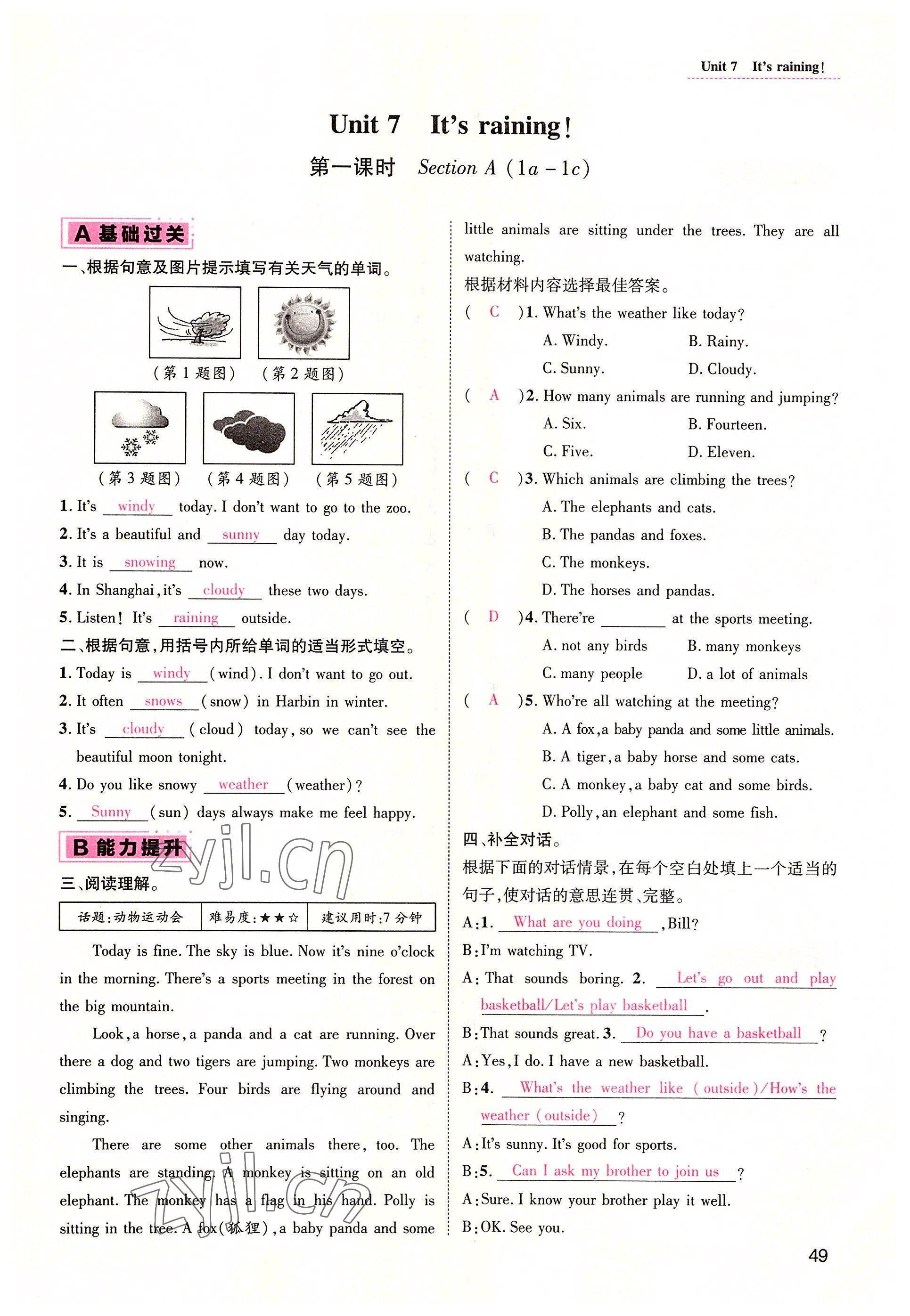 注:目前有些书本章节名称可能整理的还不是很完善,但都是按照顺序排列的,请同学们按照顺序仔细查找。练习册 2022年名师测控七年级英语下册人教版河南专版 答案主要是用来给同学们做完题方便对答案用的,请勿直接抄袭。