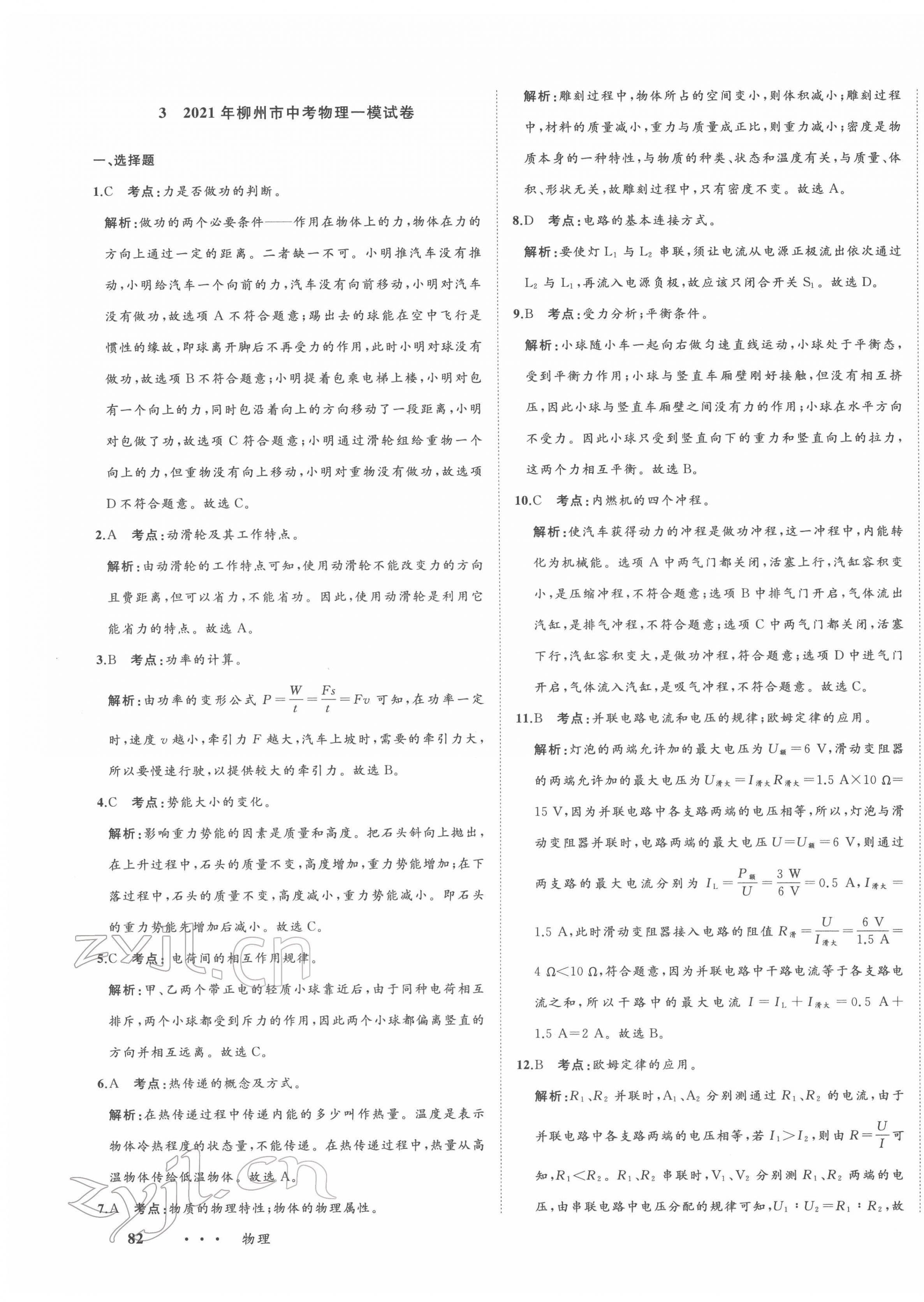 2022年中考备考指南广西2年真题1年模拟试卷物理人教版