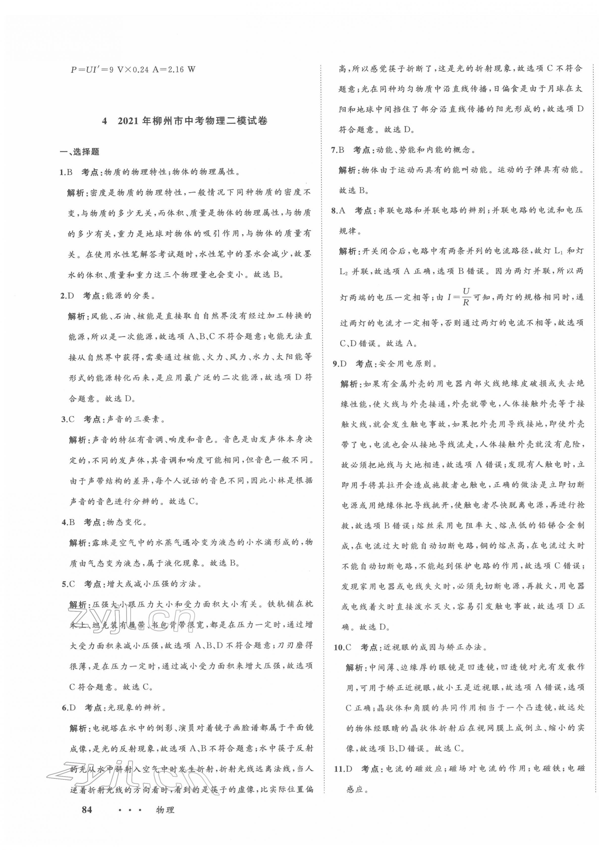 2022年中考备考指南广西2年真题1年模拟试卷物理人教版