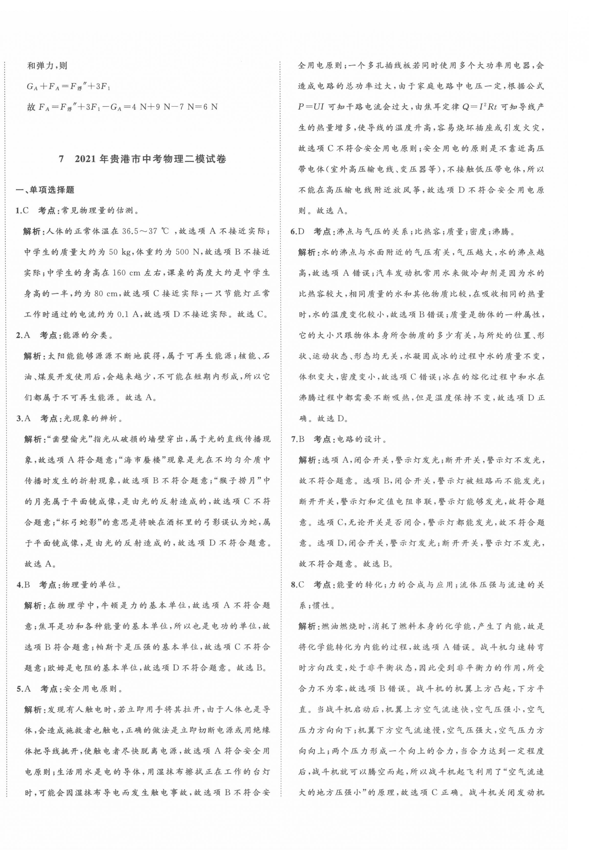 2022年中考备考指南广西2年真题1年模拟试卷物理人教版