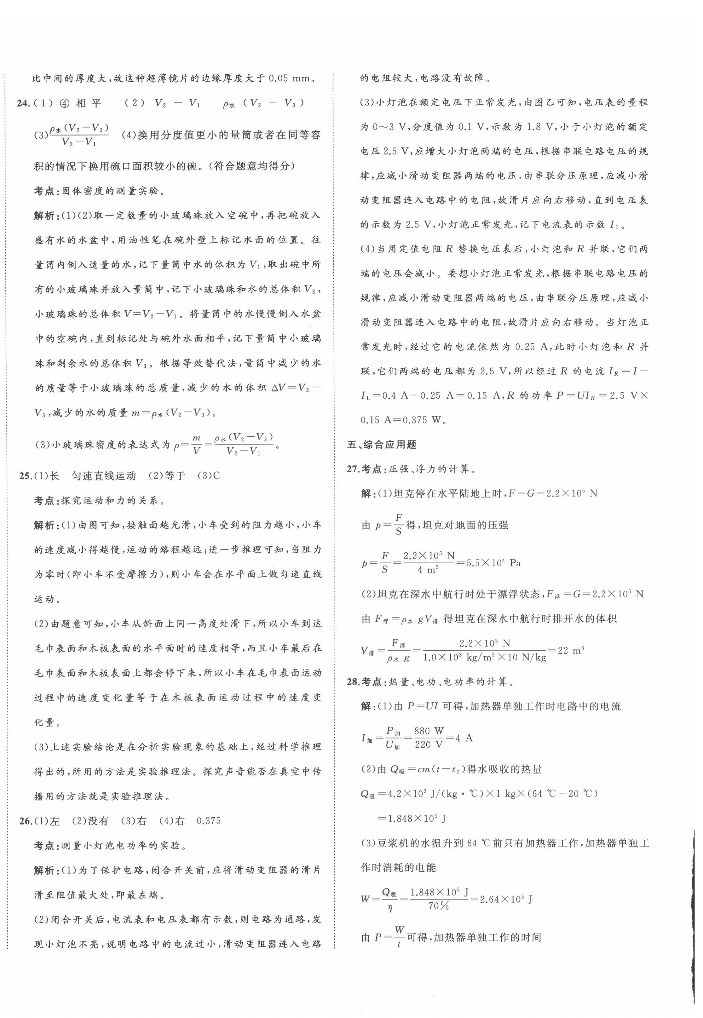 2022年中考备考指南广西2年真题1年模拟试卷物理人教版