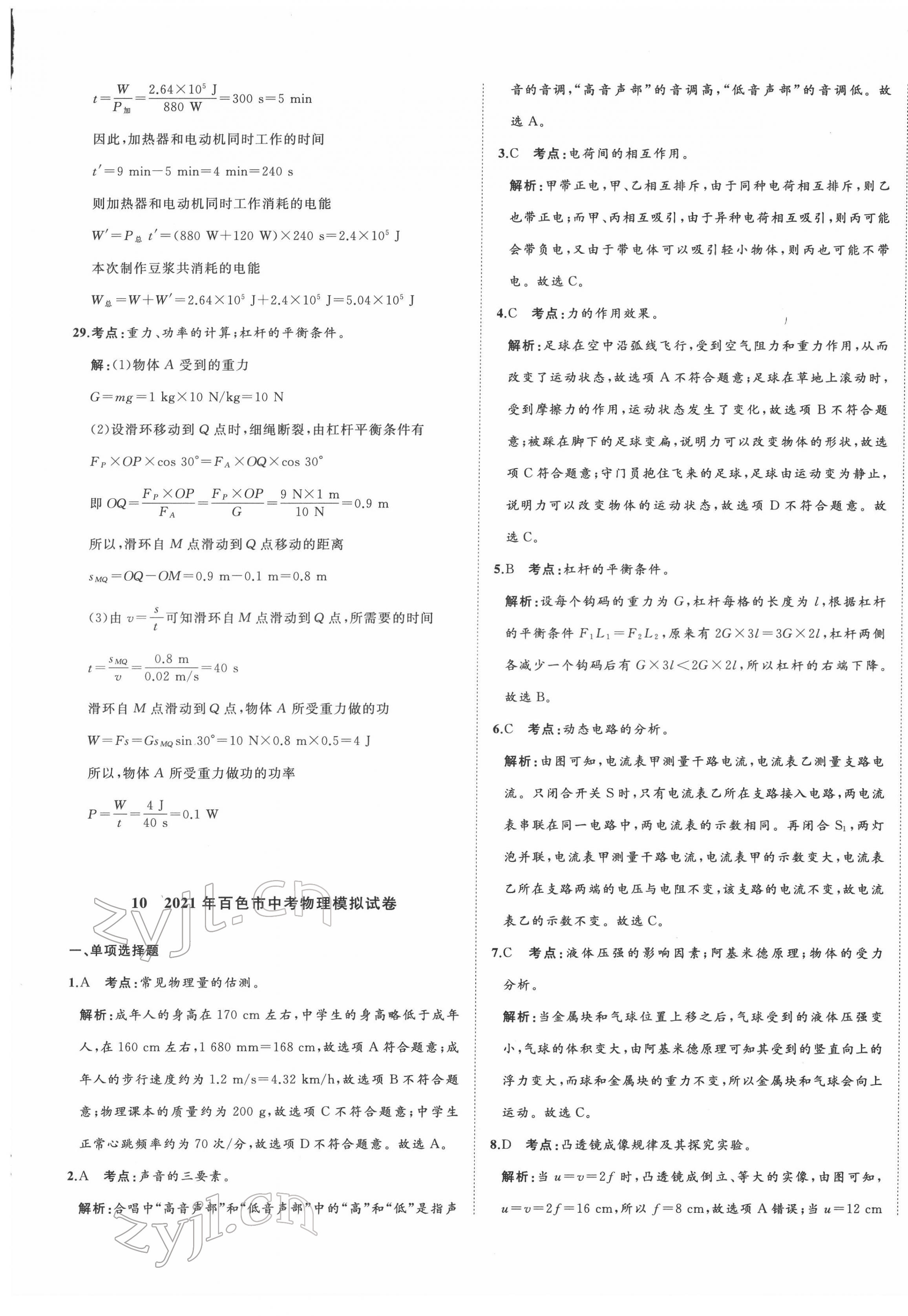 2022年中考备考指南广西2年真题1年模拟试卷物理人教版